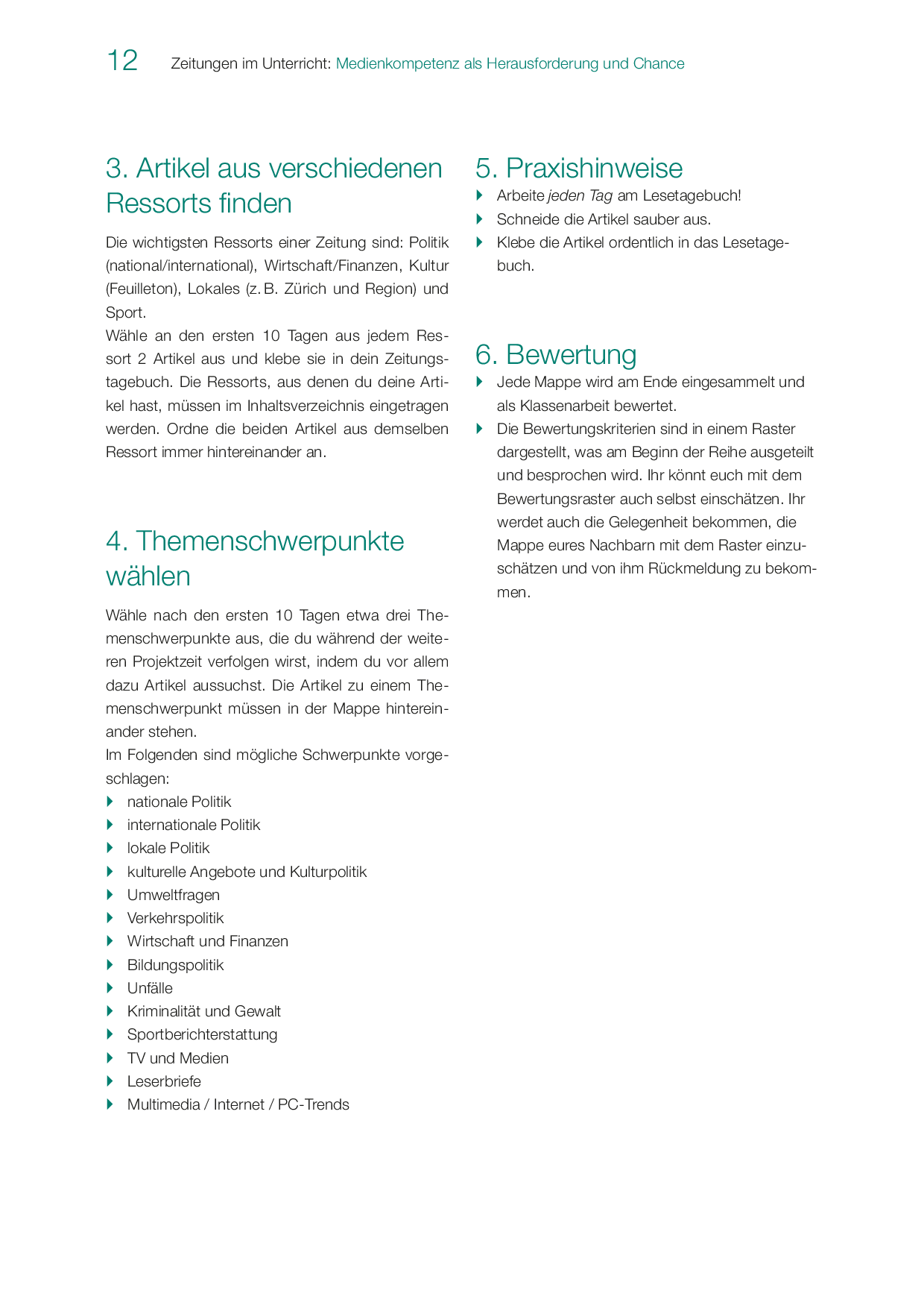 Mit einem schriftlichen Auftrag wird den Lernenden erklärt, wie sie ein Zeitungs-Portfolio erstellen. Angehängt ist ein Katalog von Fragen, die dabei helfen, einen Zeitungstext zu beurteilen.