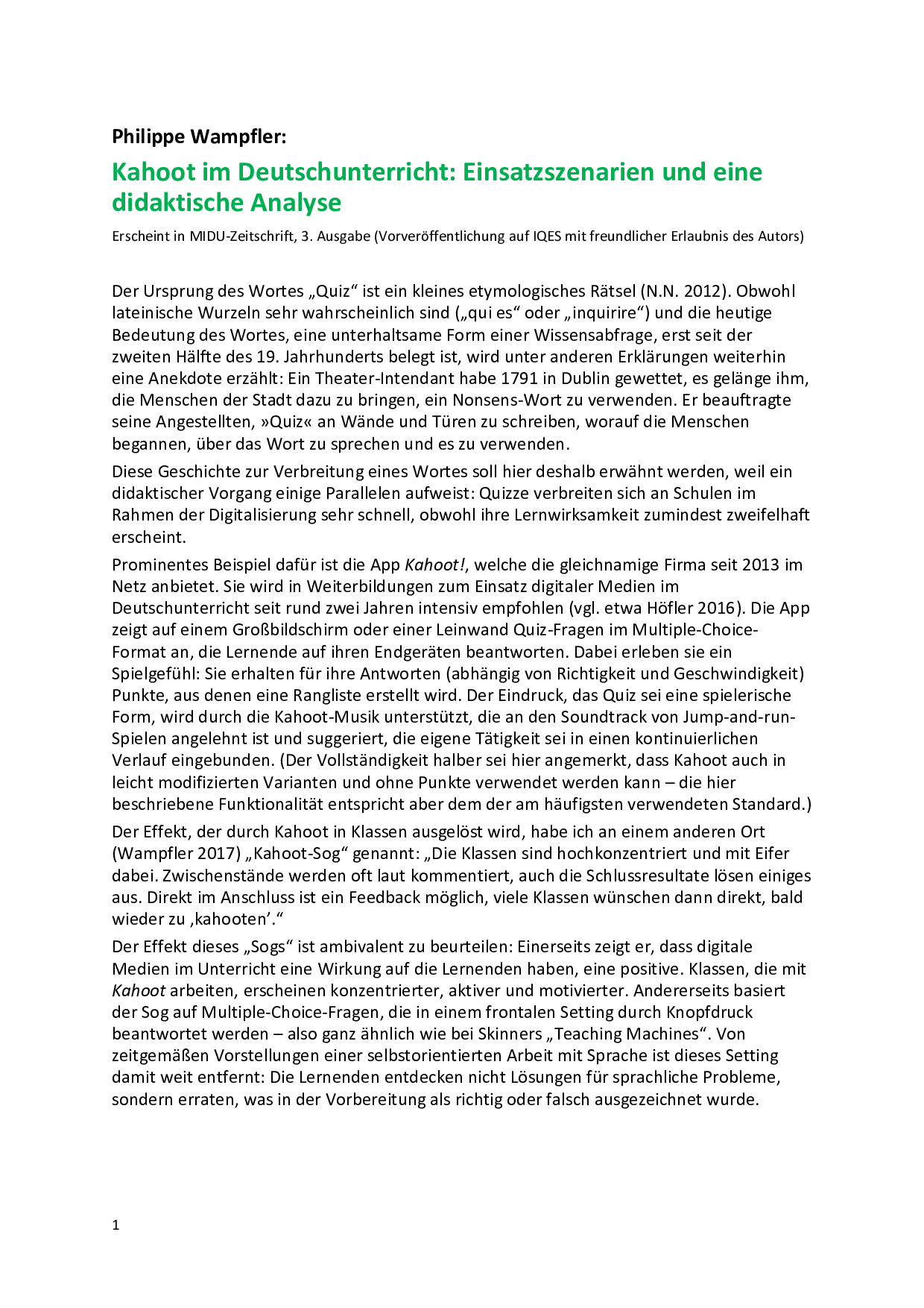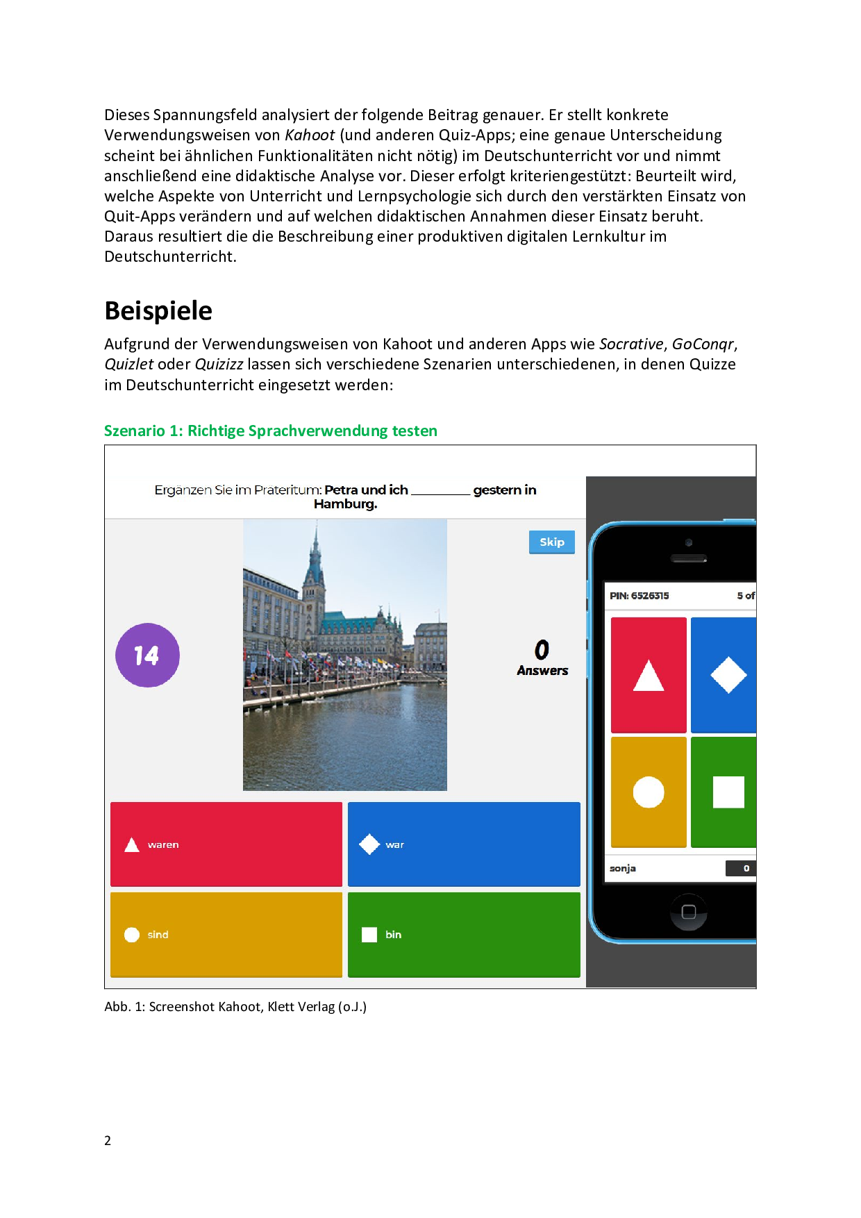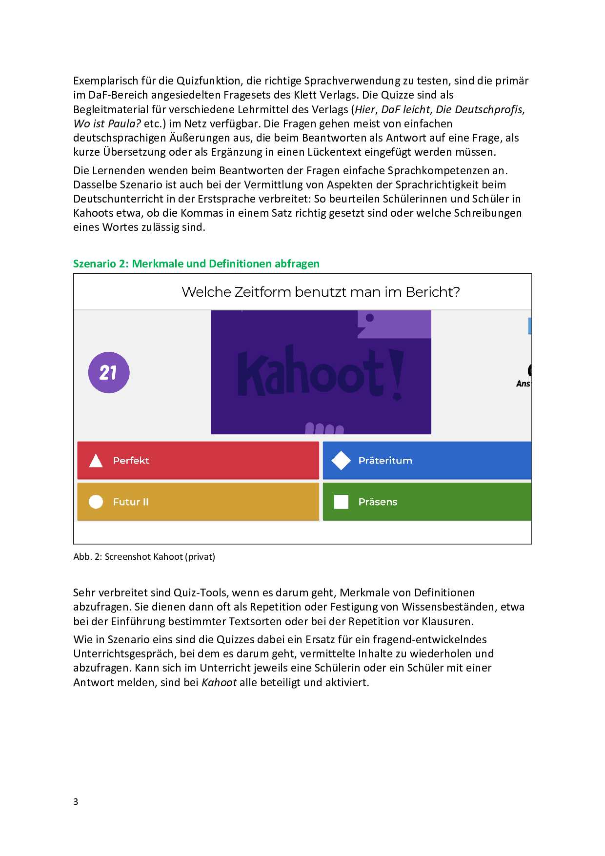 Kahoot im Deutschunterricht: Einsatzszenarien und eine didaktische Analyse