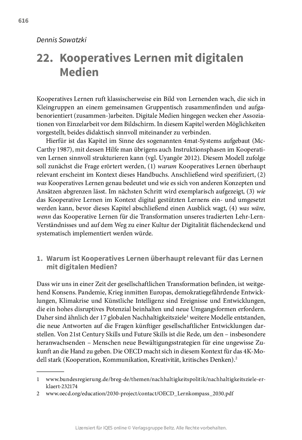 Die 3. Auflage des Standardwerks "Handbuch Lernen mit digitalen Medien" (Beltz) bietet fundierte Einblicke in die digitale Transformation der Schulen - jetzt komplett aktualisiert und um wegweisende Kapitel zur Künstlichen Intelligenz erweitert. Interessierte finden zahlreiche Beiträge zu den Potenzialen neuer Medien für zeitgemäße Lernkulturen, zu Digital Learning Leadership, zu personalisiertem Lernen, digitalem Feedback und wirksamer Lernbegleitung. Mit Empfehlungen zu 1:1-Ausstattungen und praktischen Unterrichtsideen.