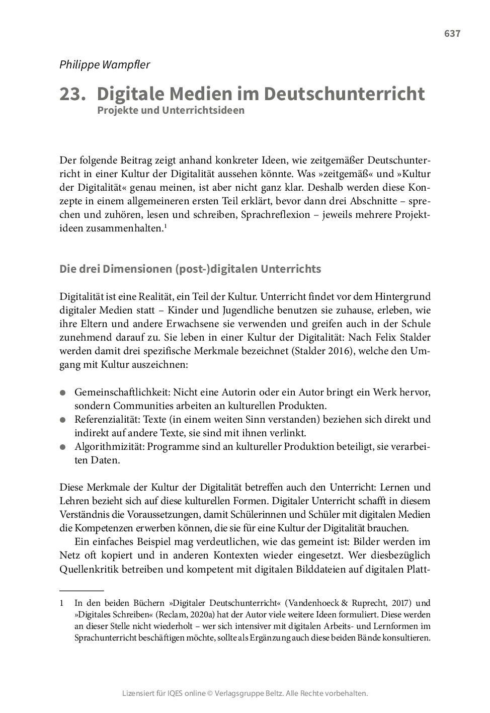 Philippe Wampfler beschreibt in seinem Beitrag, wie Jugendliche digitale Medien nutzen, und fragt danach, wie sich Social Media auf junge Menschen auswirken. Er gibt didaktische Hinweise, wie Ressourcen aus Social Media im Fachunterricht eingesetzt und Lernprozesse gestaltet werden können. Im Anschluss lässt er an Überlegungen teilhaben, wie Schulen digital nach außen kommunizieren und wie sie digitale Öffentlichkeitsarbeit mit Social Media gestalten können. Der Beitrag schliesst mit einem praxisorientierten Leitfaden zum Umgang mit Social Media in der Schule. Eine Vorlage, die an Schulen an die spezifischen Gegebenheiten (rechtliche Vorgaben, Profil der Schule, Eigenheiten der Schülerschaft, Erwartungen der Eltern etc.) angepasst werden kann und muss.