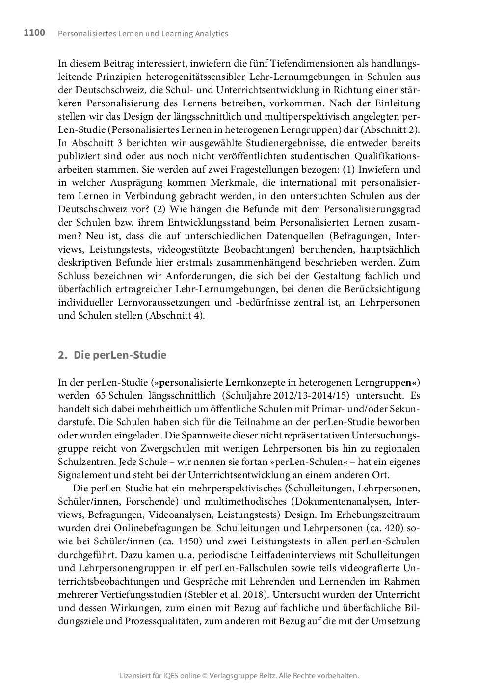 Die Rolle der Schulleitungen wird multiperspektivisch beleuchtet; dabei geht es um Fragen der Infrastruktur (Hardware und Lernplattformen) ebenso wie um Fortbildungsangebote an das Kollegium und der Aufbau einer Evaluations- und Feedbackkultur.