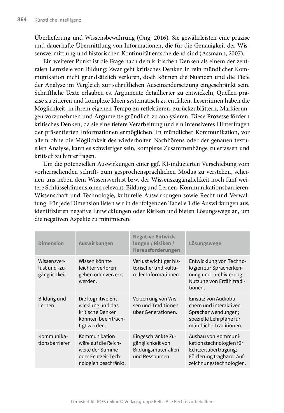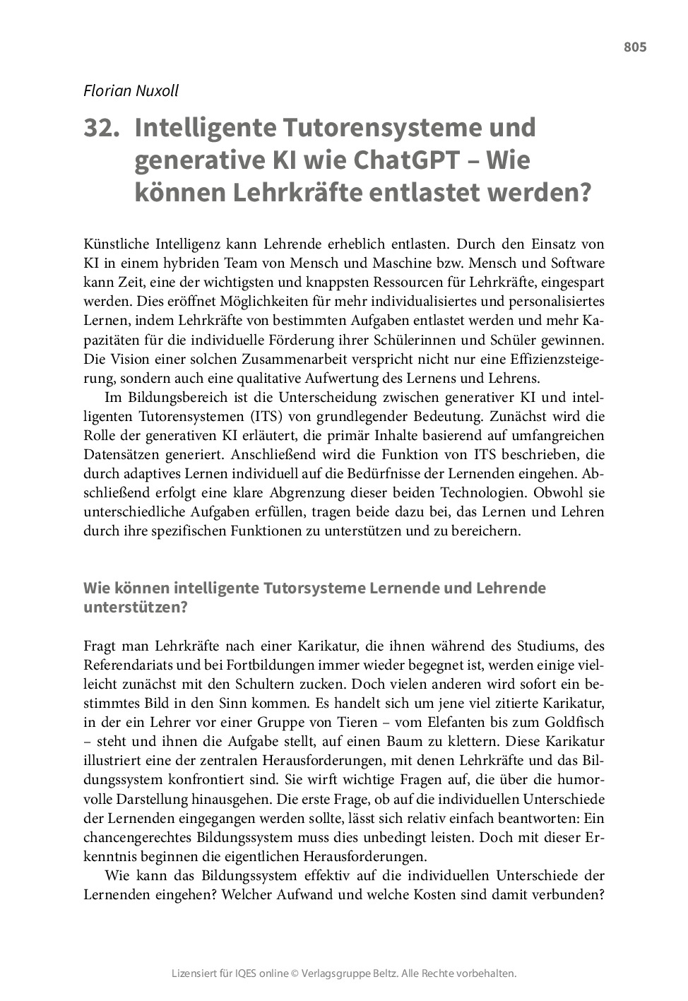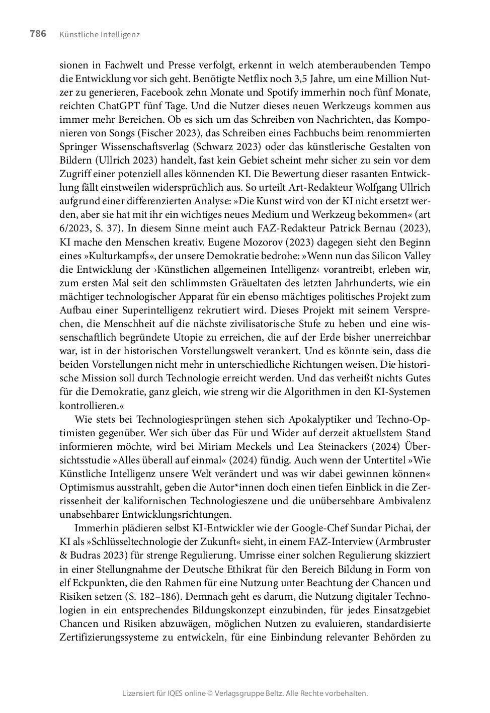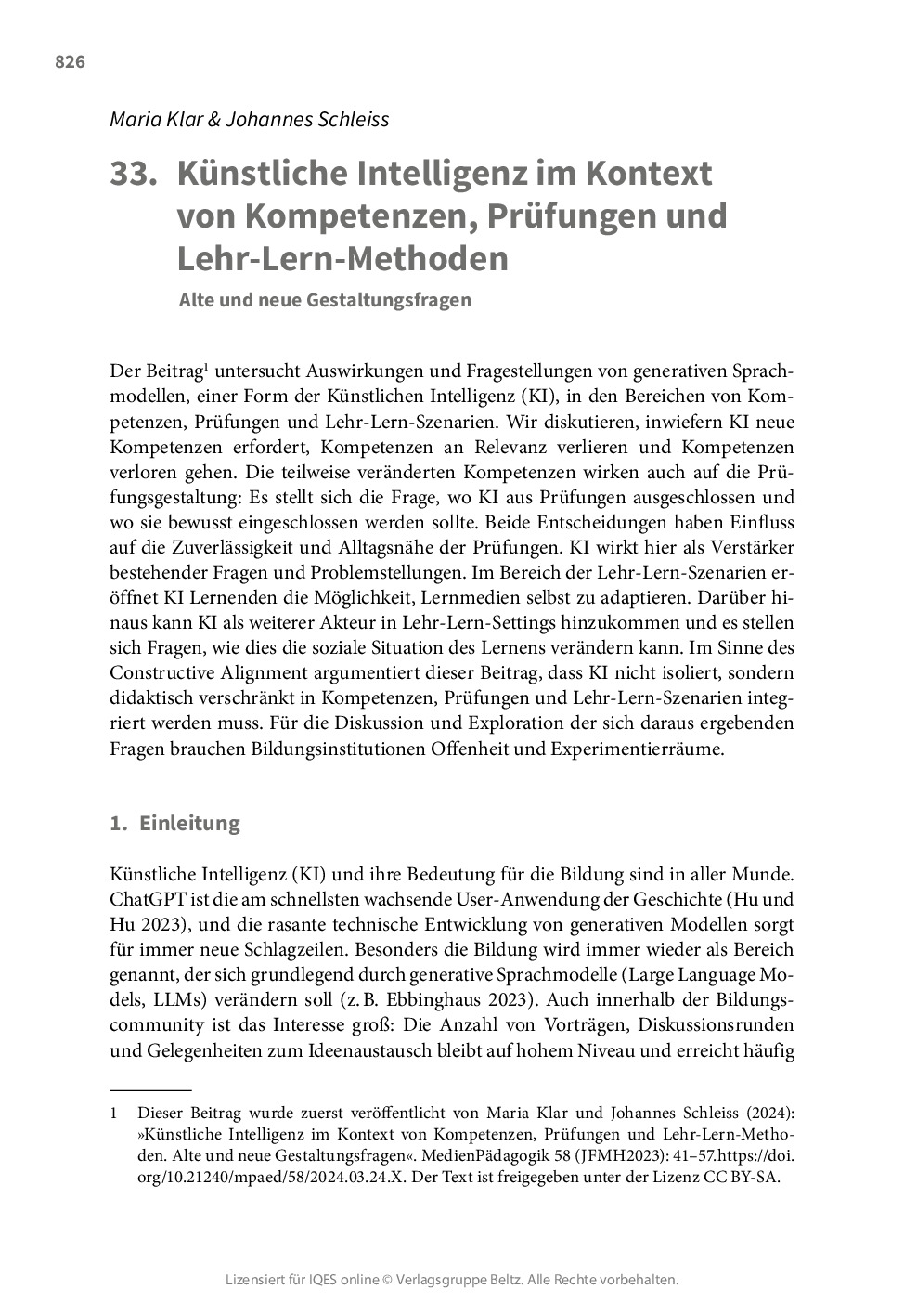 Die Herausforderungen, die sich durch die Zunahme künstlicher Intelligenz im Bildungswesen ergeben, sind riesig. Lehrkräfte, die einst Wissensvermittler waren, sehen sich nun einer Welt gegenüber, in der Wissen ubiquitär und manipulierbar ist. Dies stellt neue Anforderungen an die didaktische Herangehensweise und die Ausbildungscurricula. Die Autoren diskutieren die Notwendigkeit, Schule und Bildung im digitalen Zeitalter neu zu denken, um zukünftige Generationen adäquat vorzubereiten und zu befähigen, mit der Unsicherheit und den Herausforderungen der modernen, digital durchdrungenen Welt umzugehen. Dabei wird die Rolle von Bildungsinstitutionen hervorgehoben, die zwischen alten Strukturen und neuen Anforderungen vermitteln müssen. Der Beitrag plädiert für eine tiefgreifende Transformation des Bildungssystems, um es zukunftsfähig zu machen und die Potenziale der Digitalisierung sinnvoll zu nutzen.