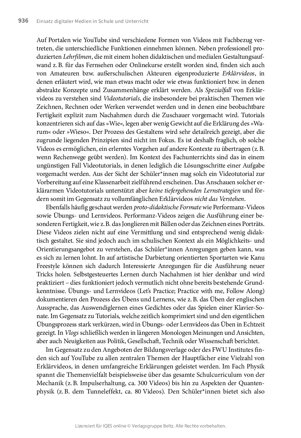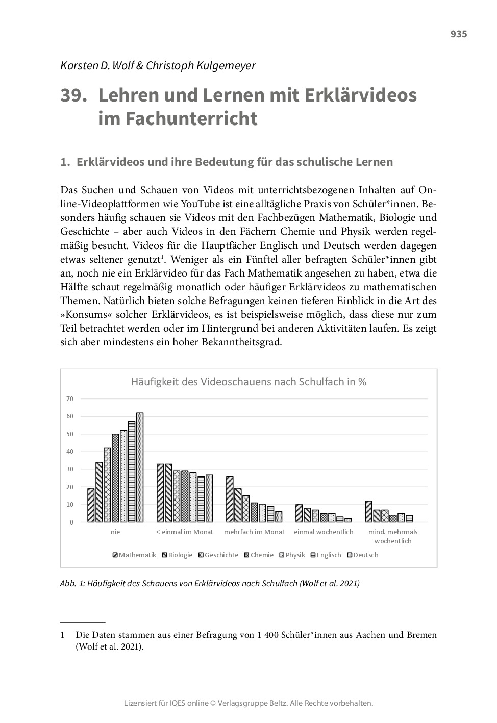Das Suchen und Schauen von Videos mit unterrichtsbezogenen Inhalten auf Online-Videoplattformen wie YouTube ist eine alltägliche Praxis von Schüler:innen. Auch wenn Erklärvideos von den Schüler:innen intensiv genutzt werden und eine hohe Akzeptanz erfahren, entstehen dadurch möglicherweise Probleme. Wie können nun Erklärvideos effektiv im Unterricht eingesetzt werden? Dazu hilft es, Erklärvideos bezüglich der Produzierenden und der Rezipienten zu systematisieren. Beide Rollen können sowohl von Lehrkräften als auch von Schüler:innen übernommen werden. Wie können Lehrkräfte Erklärvideos für Lernende produzieren (Lehren durch Erklären mit Videos)? Wie können Schüler:innen als Rezipienten von Erklärvideos profitieren (Lernen mit Erklärvideos)? Wie können Lernende selbst Erklärvideos produzieren (Lernen durch Erklären mit Videos)?