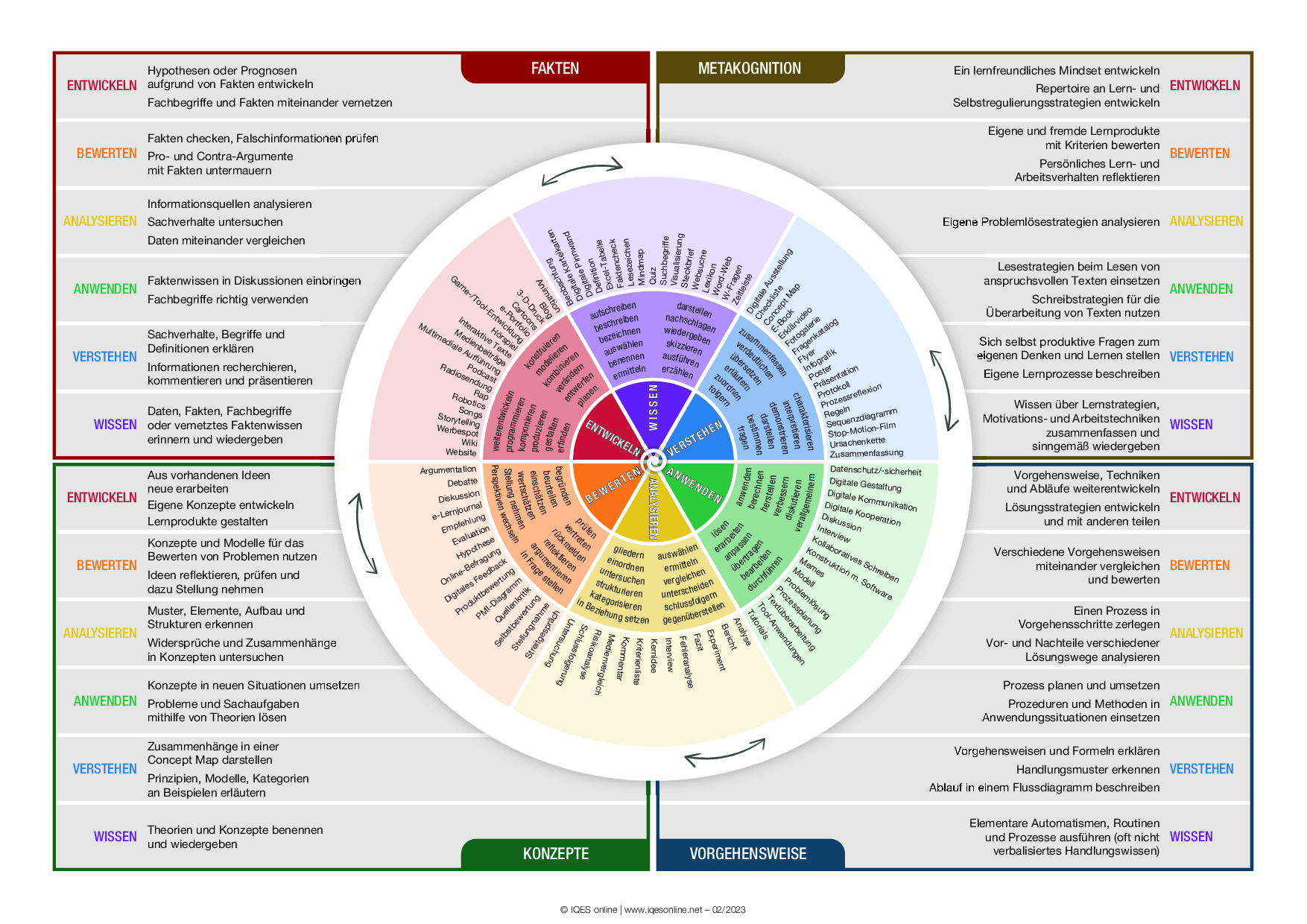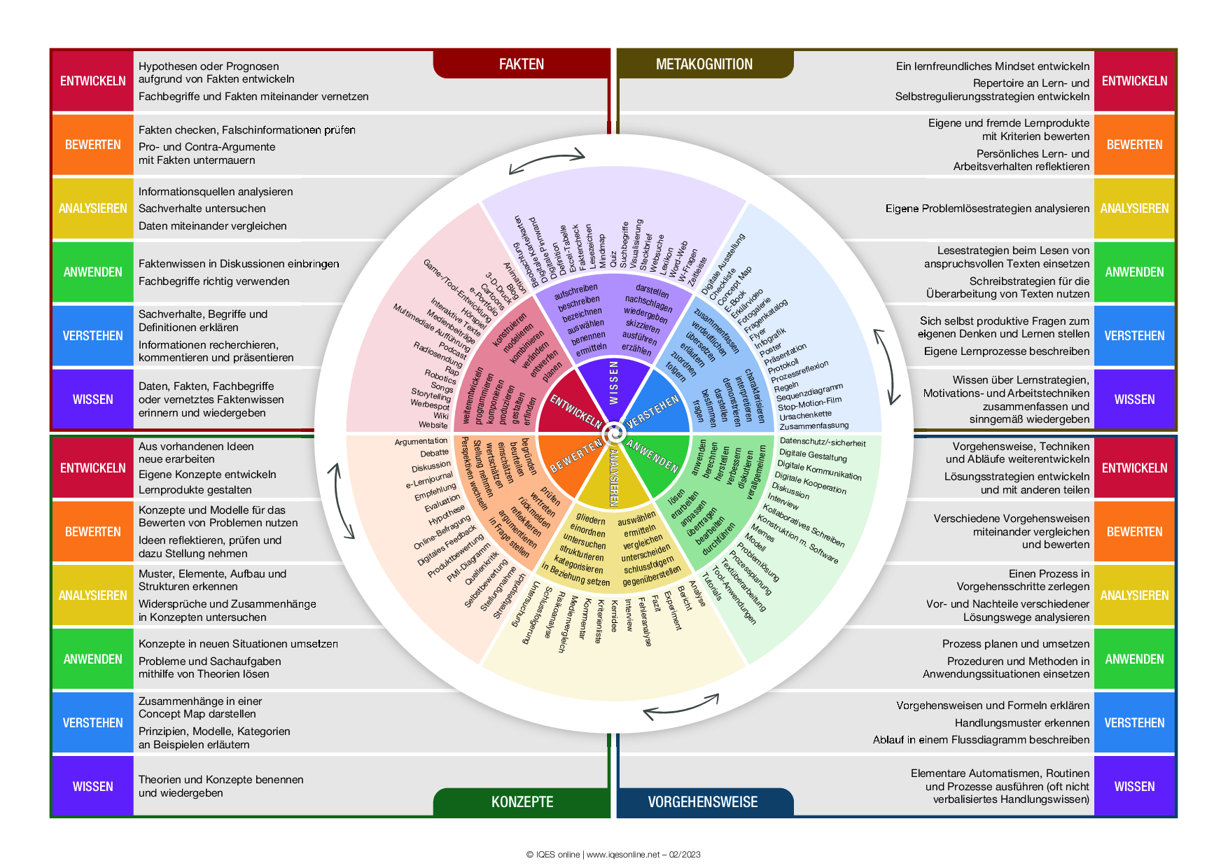 Wie können Aufgaben mit digitalen Medien formuliert werden, die tiefes Verstehen und gründliches Beherrschen fördern? Wie können sie auf eine Weise gestellt werden, durch die Kompetenzen sichtbar, beobachtbar und besprechbar werden? Das von uns auf der Grundlage der Bloom’schen Taxonomie erstellte IQES-Kompetenzrad ist ein Werkzeug, um digitale Aufgaben für unterschiedliche Stufen des Wissens und Könnens zu gestalten.