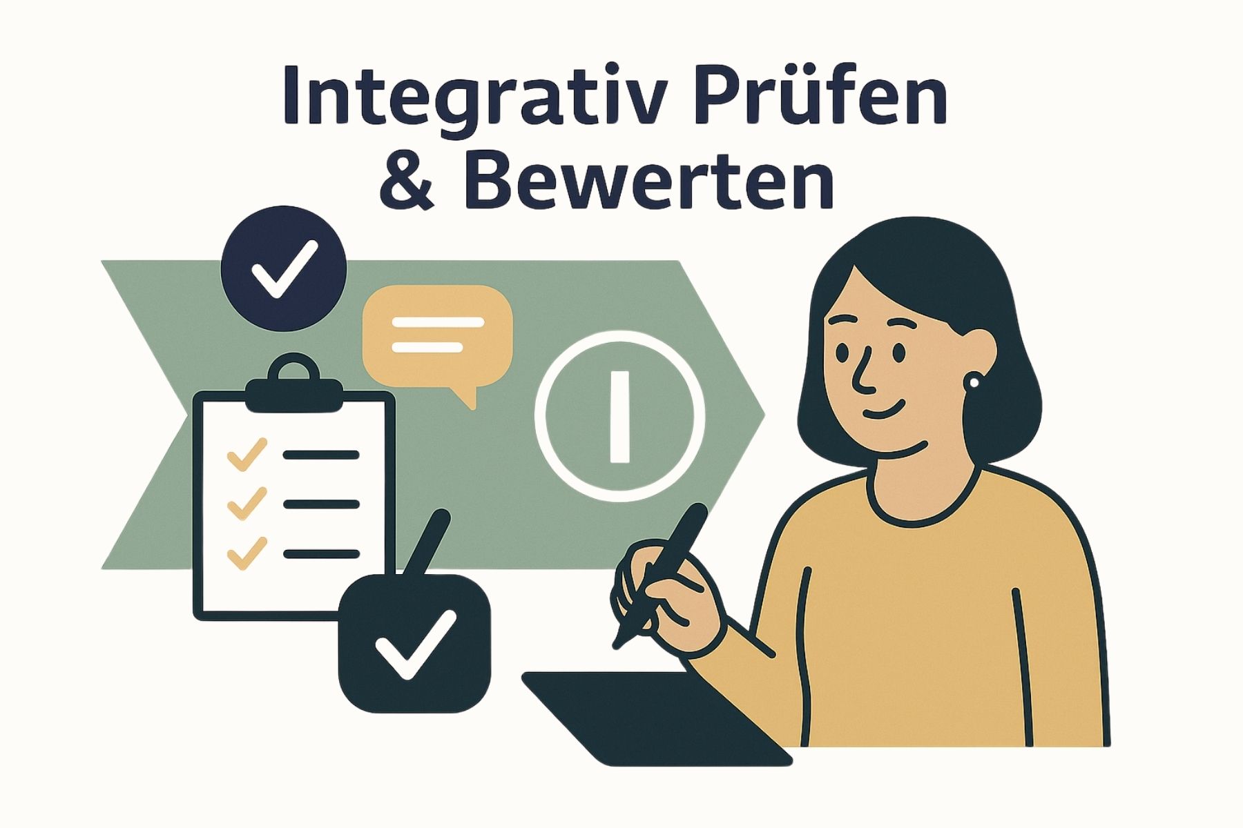 Mit dem zunehmenden Einsatz von KI gewinnen ebenso erweiterte Formen der Bewertung an Bedeutung. Je intensiver KI in Prüfungen eingebunden ist, desto wichtiger wird die Reflexion über ihren Einsatz, die neben den inhaltlichen Aspekten als eigener Prüfungsbestandteil berücksichtigt werden muss. Die Bewertung sollte zudem verstärkt den Arbeits- und Lernprozess sowie die Mehrdimensionalität (schriftlich, mündlich, praktisch, digital) einbeziehen. Zur Bewertung braucht es KI-bezogene Erwartungshorizonte mit eindeutigen Operatoren.