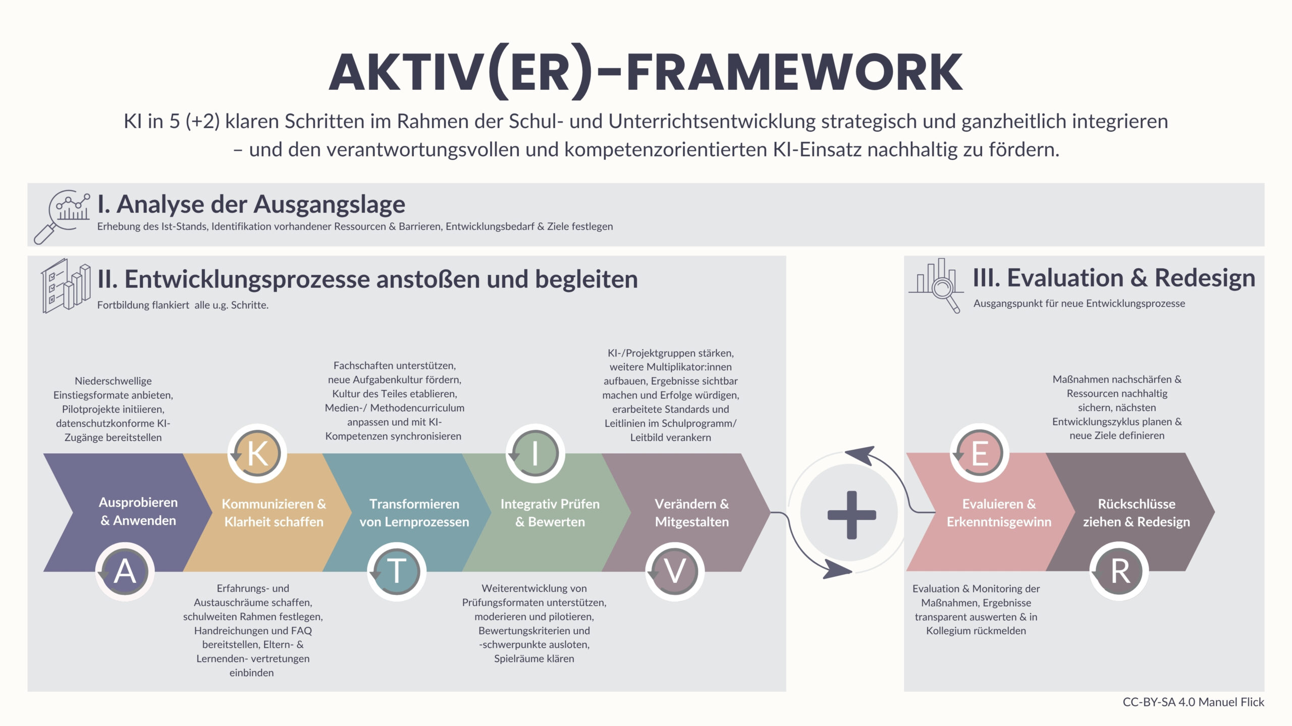 Natürlich liegt auch hier nicht ein langer Weg vor uns. Es braucht Ausdauer, Mut und Offenheit, um diesen Wandel aktiv mitzugestalten. Ich hoffe, dass das AKTIV-Framework dabei einige Impulse liefert, Orientierung gibt und ganz konkret Unterstützung für Schulen und Lehrkräfte bietet.
