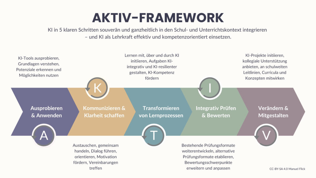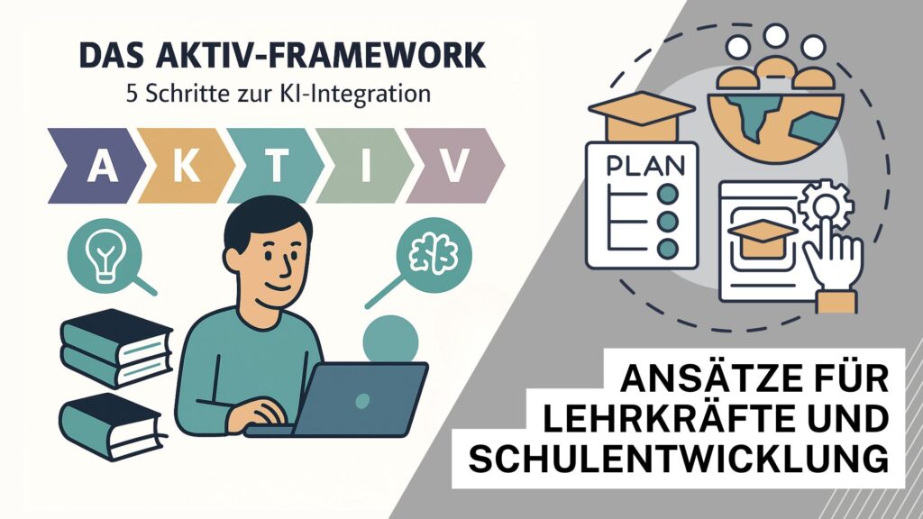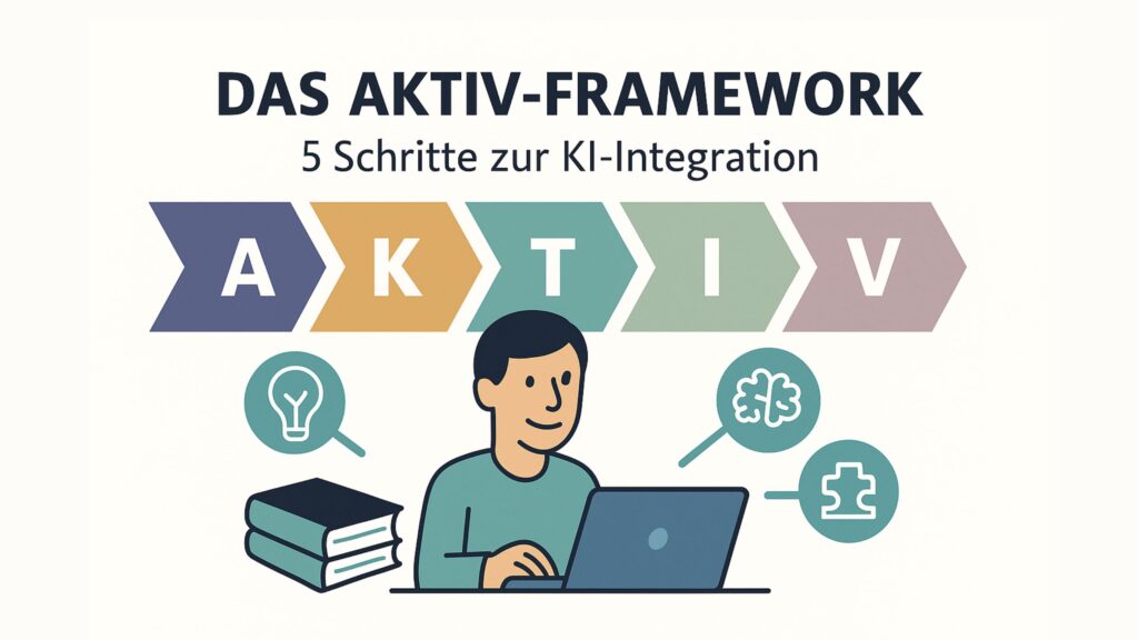 Das AKTIV-Framework unterstützt Lehrkräfte mit einer klaren Handlungsanleitung, um Künstliche Intelligenz nicht nur gezielt einzusetzen, sondern ganzheitlich und kompetenzorientiert in Schule und Unterricht zu integrieren.