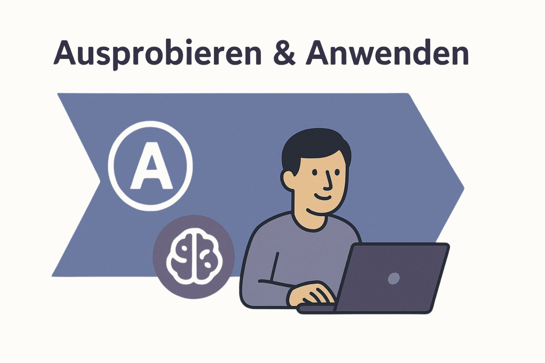 Um sich dem Thema KI zu nähern, ist der erste pragmatische Schritt, konkrete Anwendungserfahrungen zu sammeln. Diese explorative Herangehensweise ermöglicht eine Annäherung an die Thematik und fördert über die anschließende Reflexion einen ersten Erkenntnisgewinn.