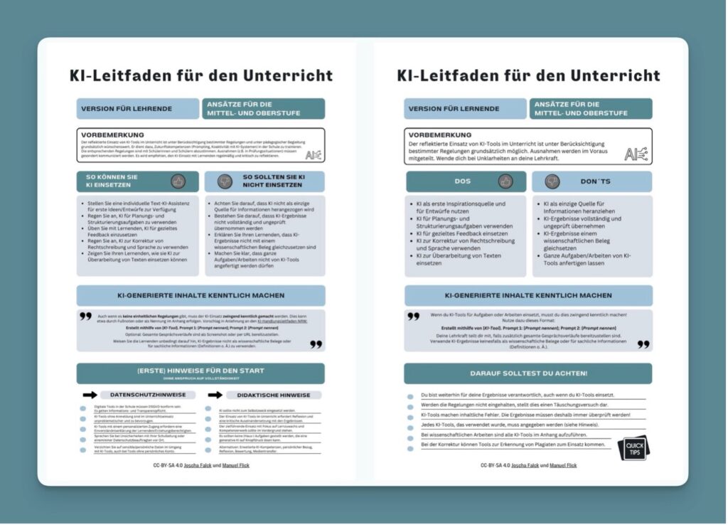 Der KI-Leitfaden für den Unterricht, den Joscha Falck und ich gemeinsam entwickelt haben, bildet einen guten Startpunkt, um einen ersten Rahmen für den Umgang mit KI in der Schule und im Unterricht festzulegen.