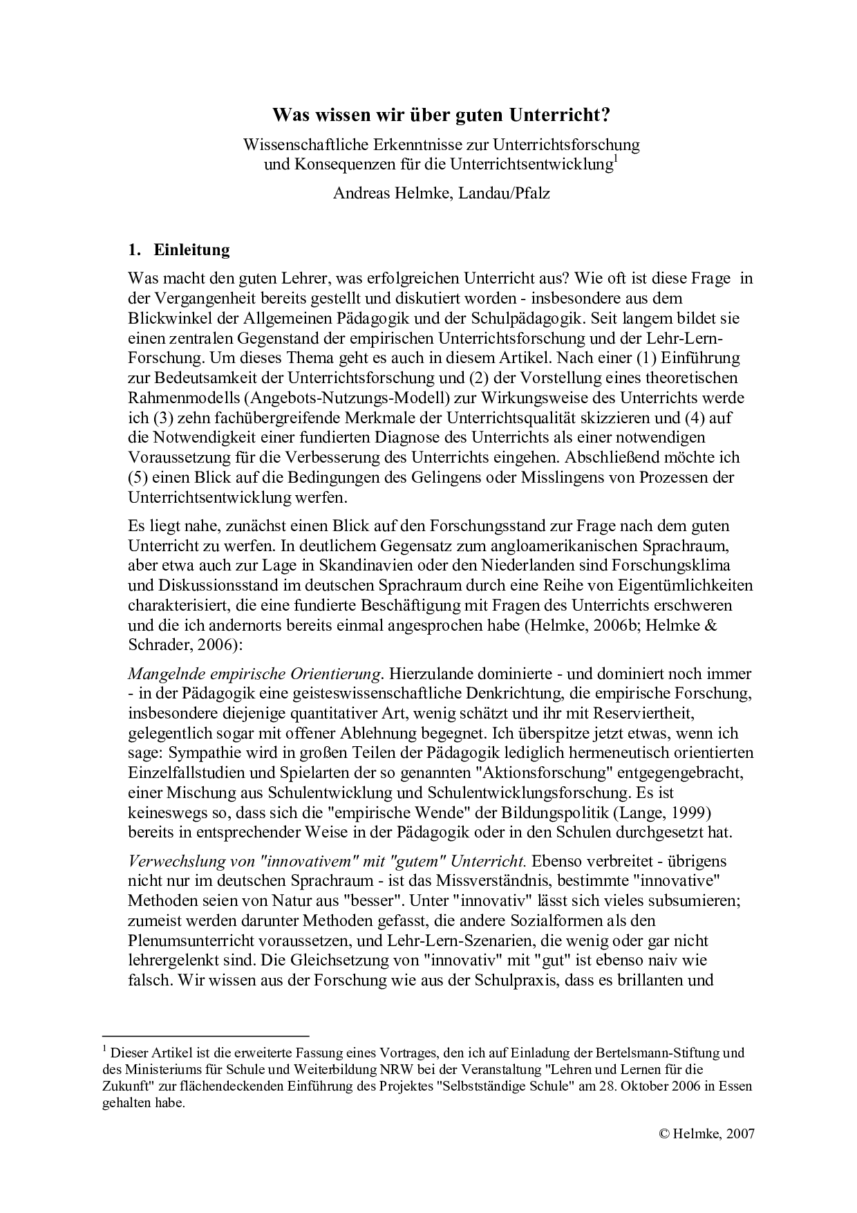 Herkunft: Seminar Heft 3/2008: Unterrichtsqualität, Lehrerbildung und Schule. Schneider Verlag Hohengehren. ISBN 3-89676-Sem208