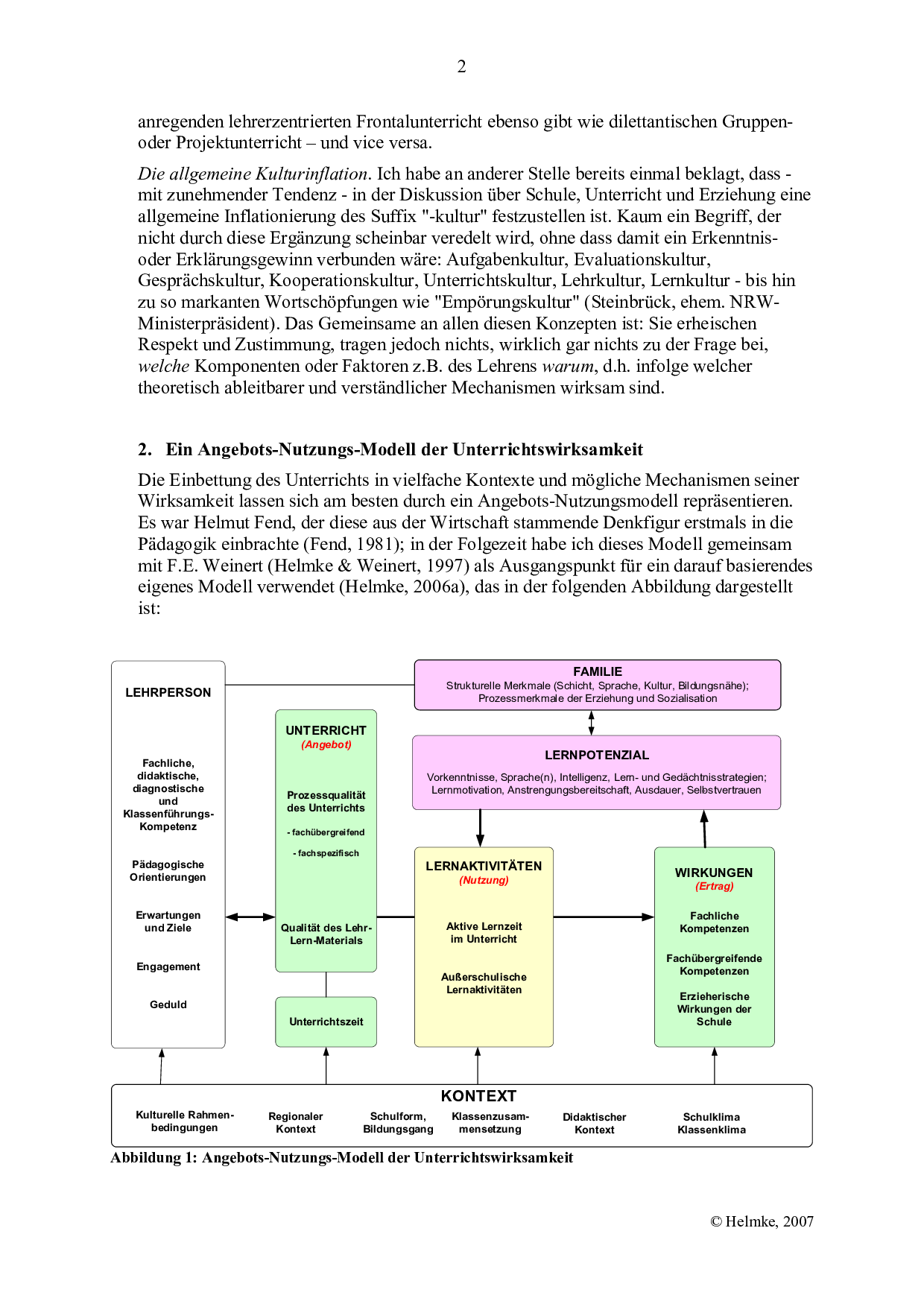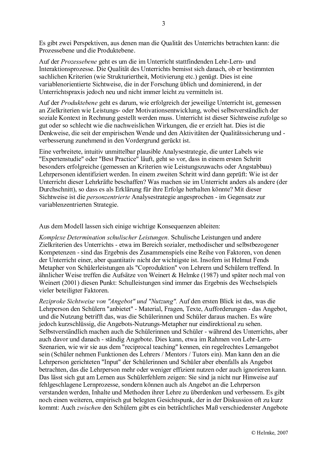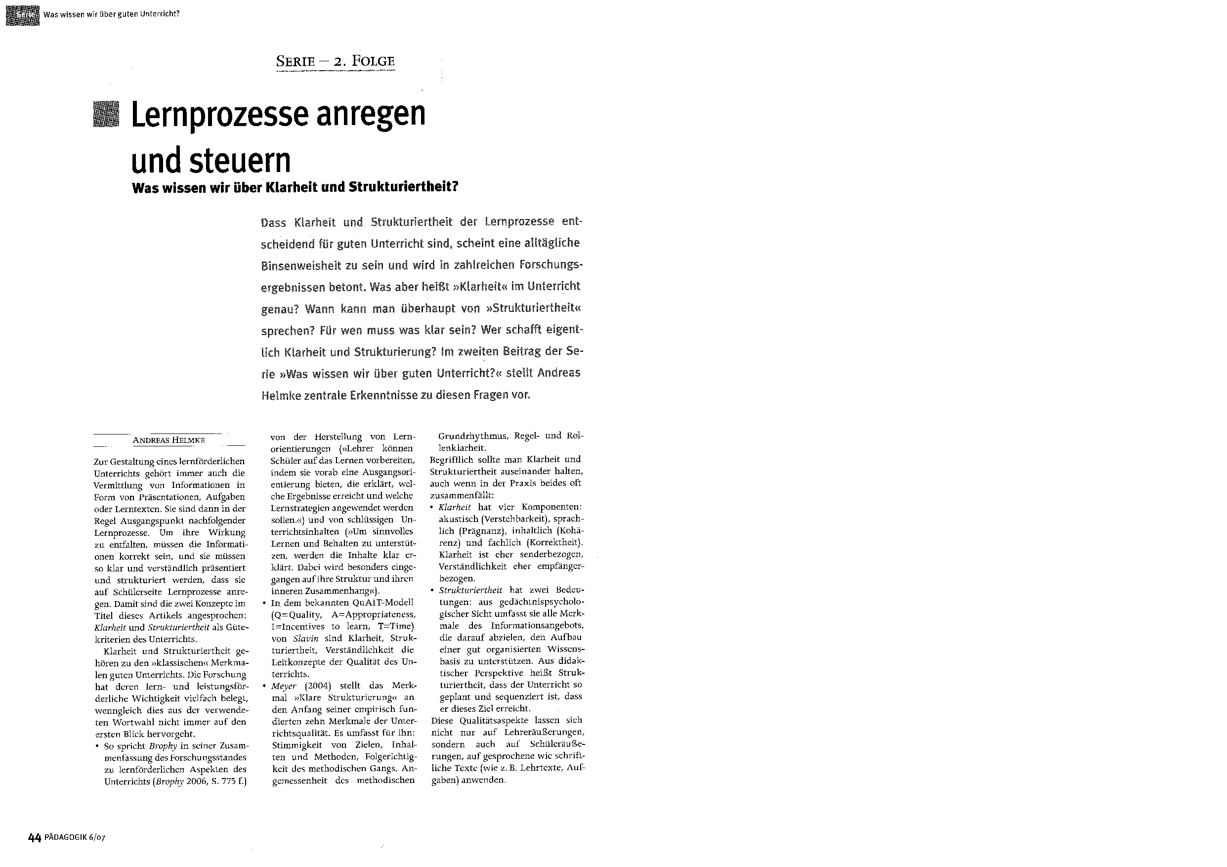 Interview mit dem Unterrichtsforscher Andreas Helmke über das «Angebots-Nutzungs-Modell zur Erklärung des Lernerfolgs» (3 Seiten).