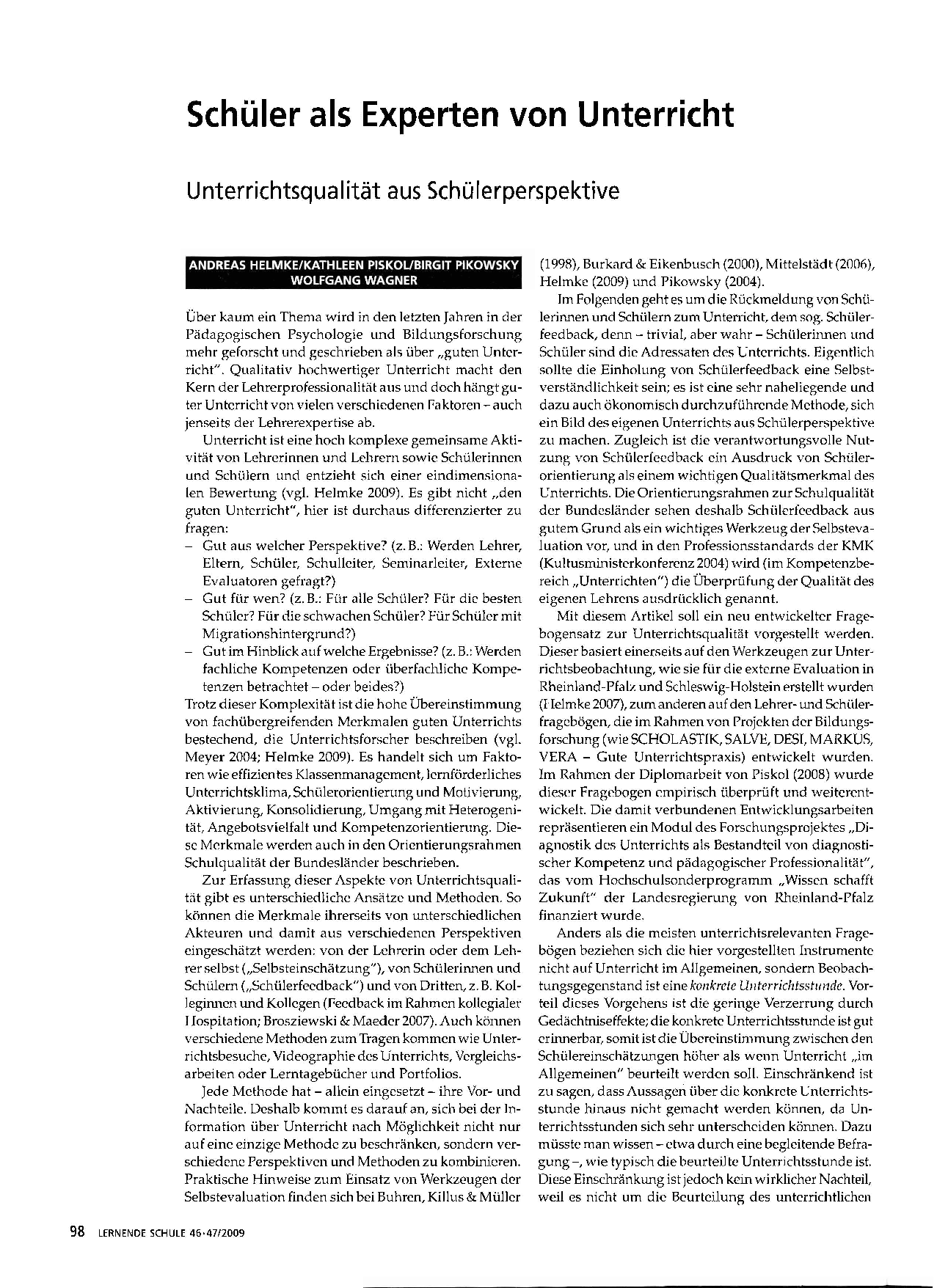 Autor/Autorin: Andreas Helmke, Birgit Pikowsky, Kathleen Piskol, Wolfgang Wagner
