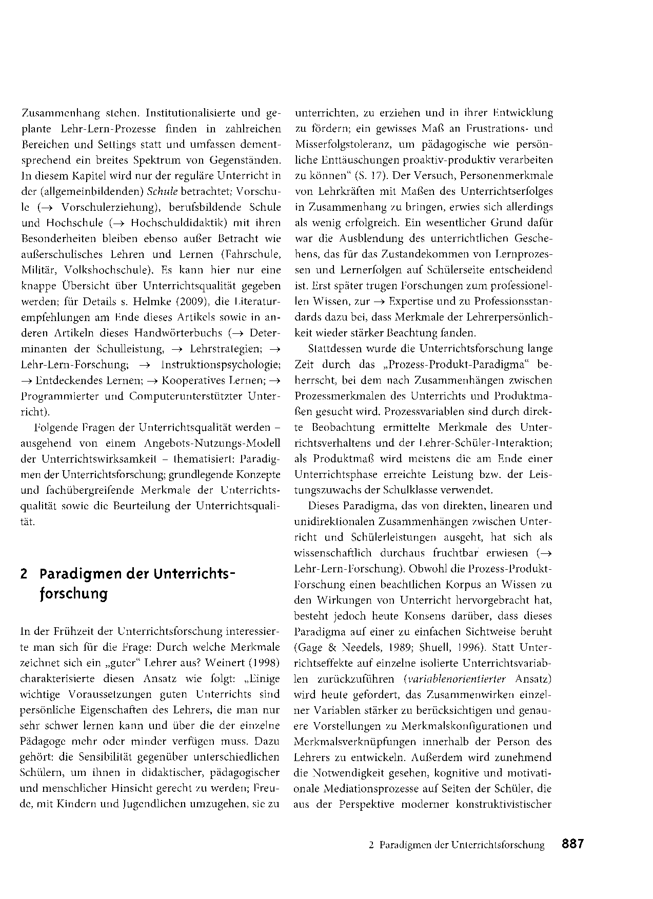 In diesem Fachartikel werden Paradigmen der Unterrichtsforschung, grundlegende Konzepte und fachübergreifende Merkmale der Unterrichtsqualität sowie die Beurteilung der Unterrichtsqualität behandelt.