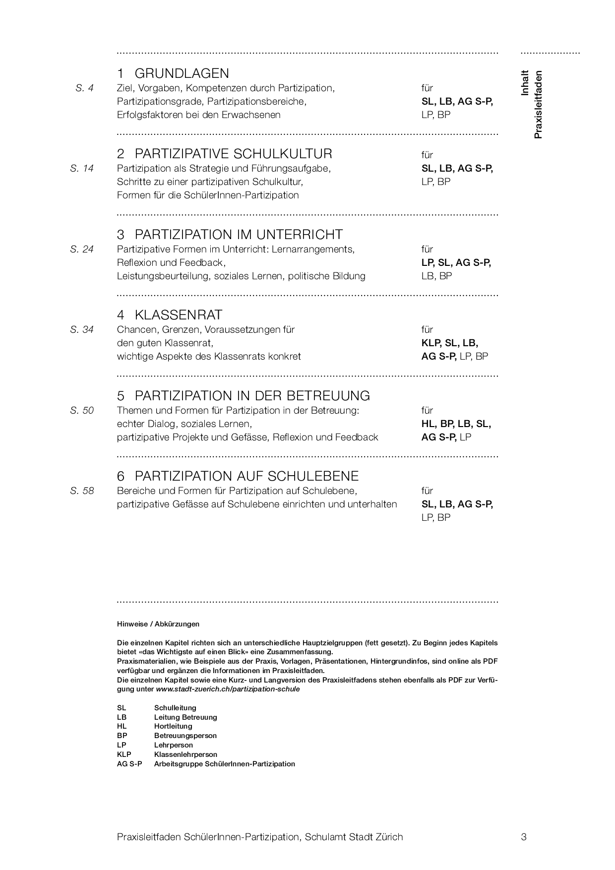 Langversion Praxisleitfaden zur Schüler/innen-Partizipation mit sechs Kapiteln.