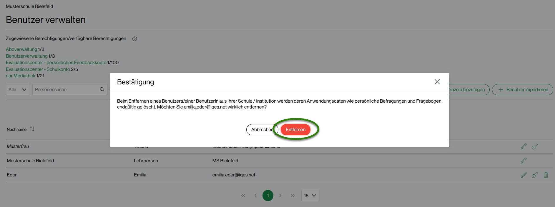Benutzer/in aus der Schule entfernen: