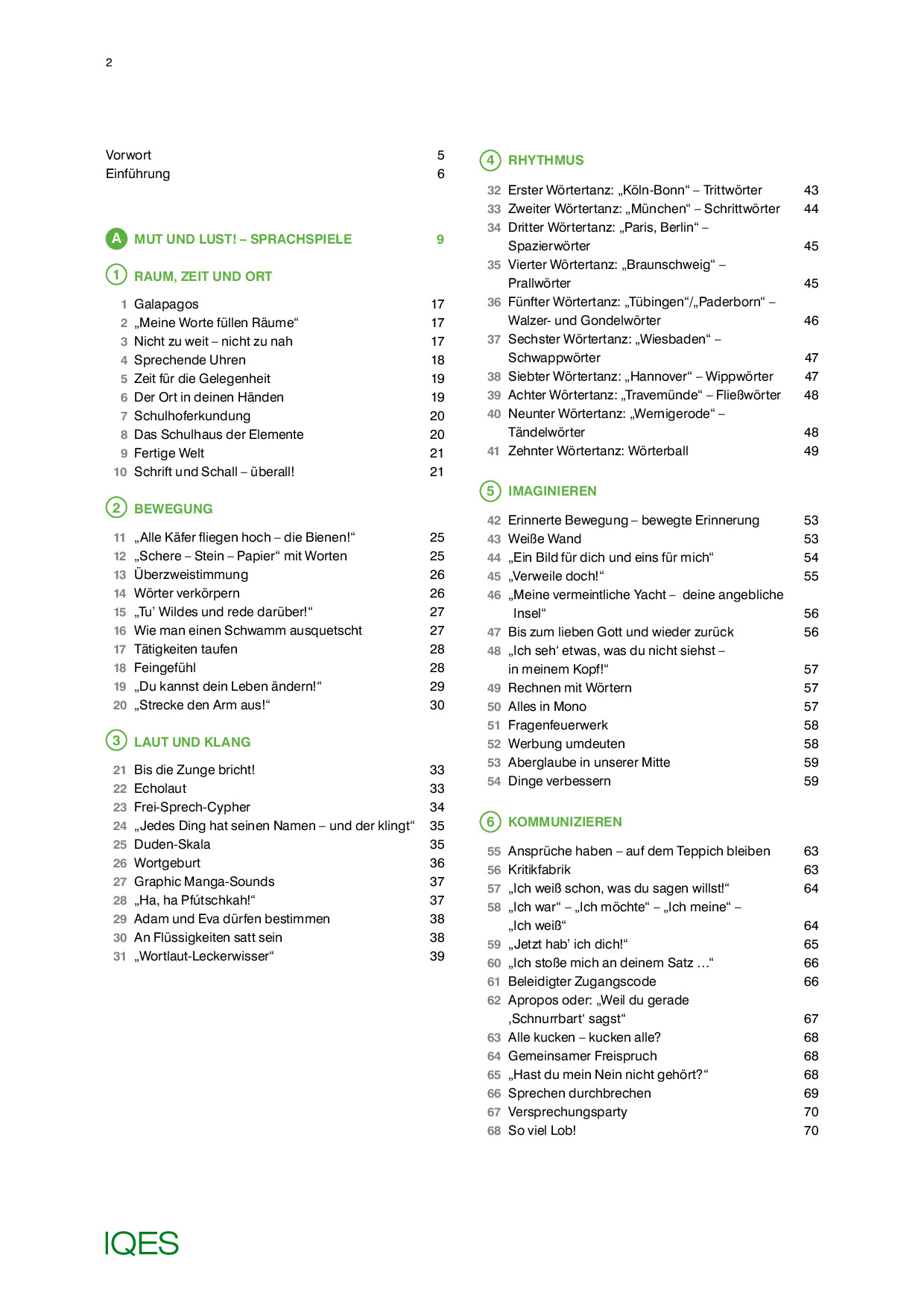 Der erste Hauptteil »Mut und Lust! – Sprachspiele« zeichnet sich durch seine besonders niedrigschwelligen und dennoch wirkungsvollen Zugänge zur Sprache aus.