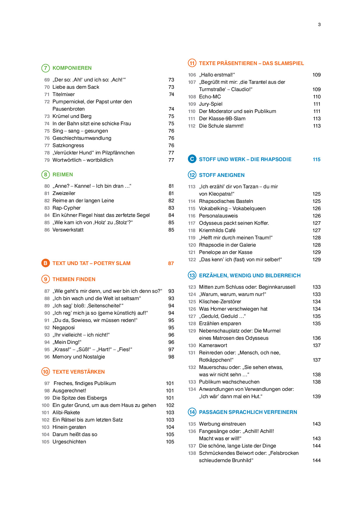 Der zweite Hauptteil führt in die Welt des Poetry Slams ein – einer modernen Form des literarischen Wettbewerbs, die besonders für Jugendliche attraktiv ist.