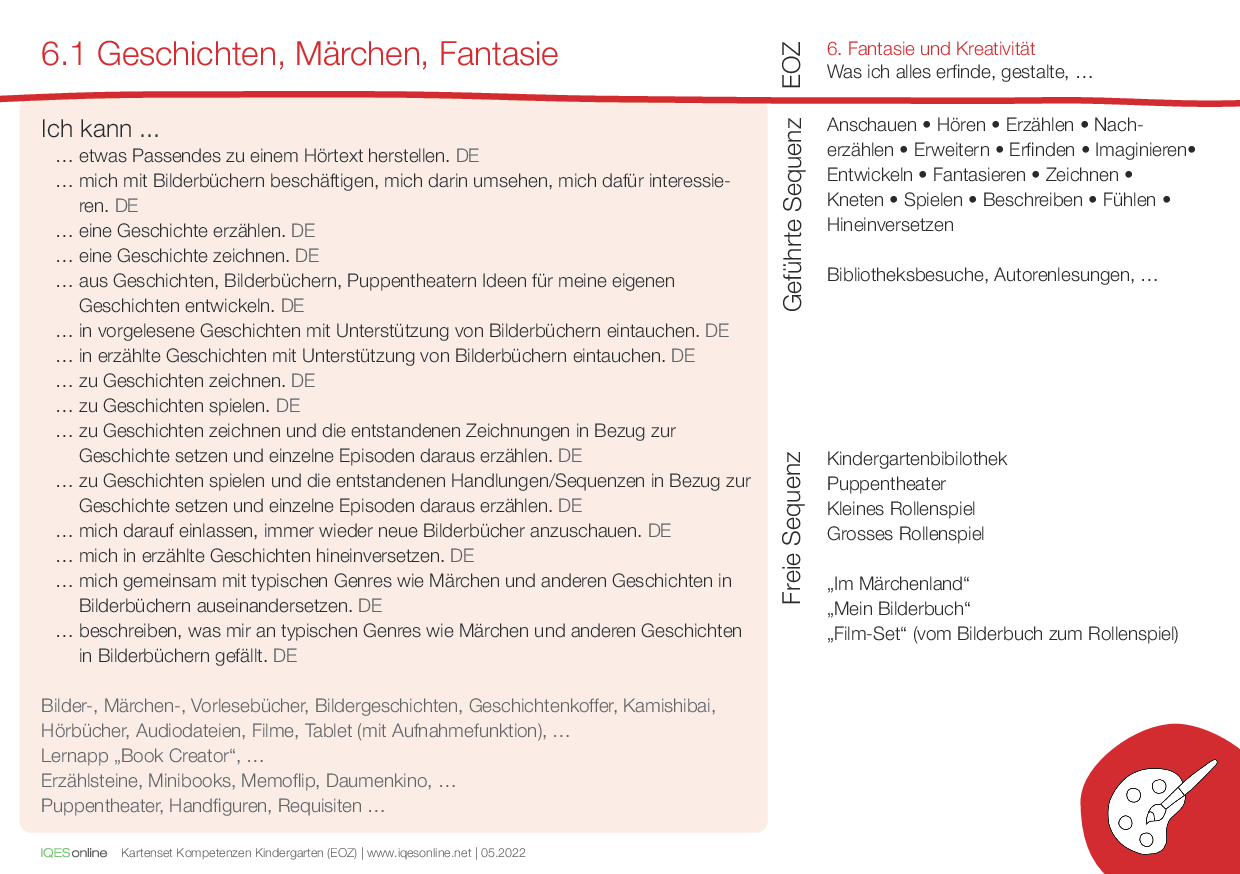Als Ausgangslage für die Zusammenstellung der Karten diente der Schweizer Lehrplan 21. Alle Kompetenzen sind im Kartenset lückenlos vertreten. Natürlich können auch Kindergartenlehrpersonen aus anderen deutschsprachigen Ländern von diesem Kartenset profitieren, weil die Kompetenzbeschreibungen den natürlichen Entwicklungsprozessen der Kinder in diesem Alter entsprechen.
