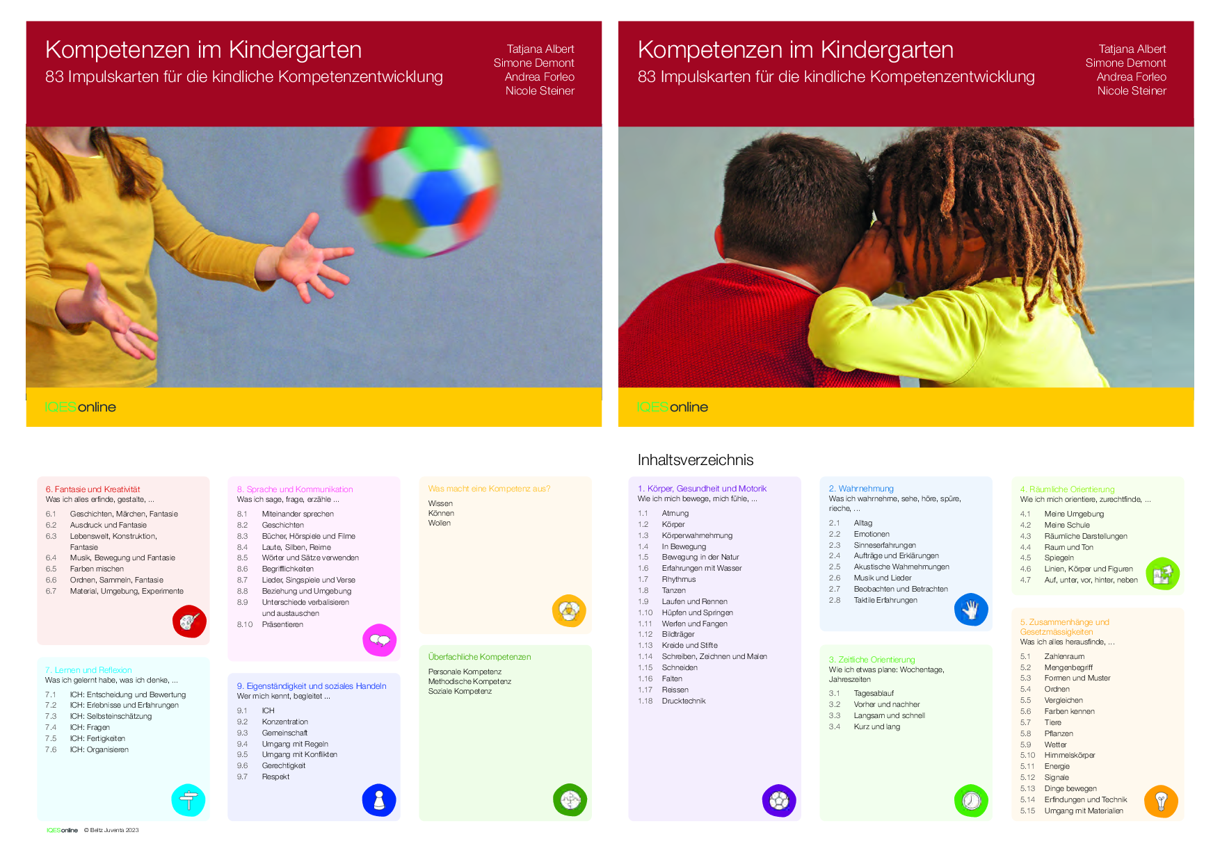 Das vorliegende Kartenset zu den Kompetenzen der Kindergartenjahre geht von der individuellen Entwicklung des Kindes aus und begleitet alle beteiligten Personen auf vielfältige Art und Weise. Durch die Arbeit mit den Karten entsteht nach und nach eine gemeinsame Sprache des Spielens und Lernens, die es den Kindern, Kindergartenlehrpersonen und Eltern ermöglicht, die einzelnen Entwicklungsschritte und Kompetenzen wahrzunehmen, zu verstehen, gemeinsam zu besprechen und wertschätzend festzuhalten.