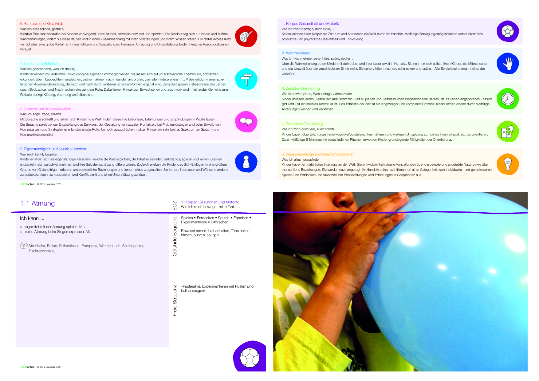 Dieses Praxiswerkzeug arbeitet mit den Inhalten des Kartensets, indem es die Beobachtungen entlang der thematischen Schwerpunkte und der damit verbundenen Kompetenzen lenkt und stützt und eine sehr umfassende und genaue Sicht auf die individuellen Entwicklungsschritte der Kinder ermöglicht.