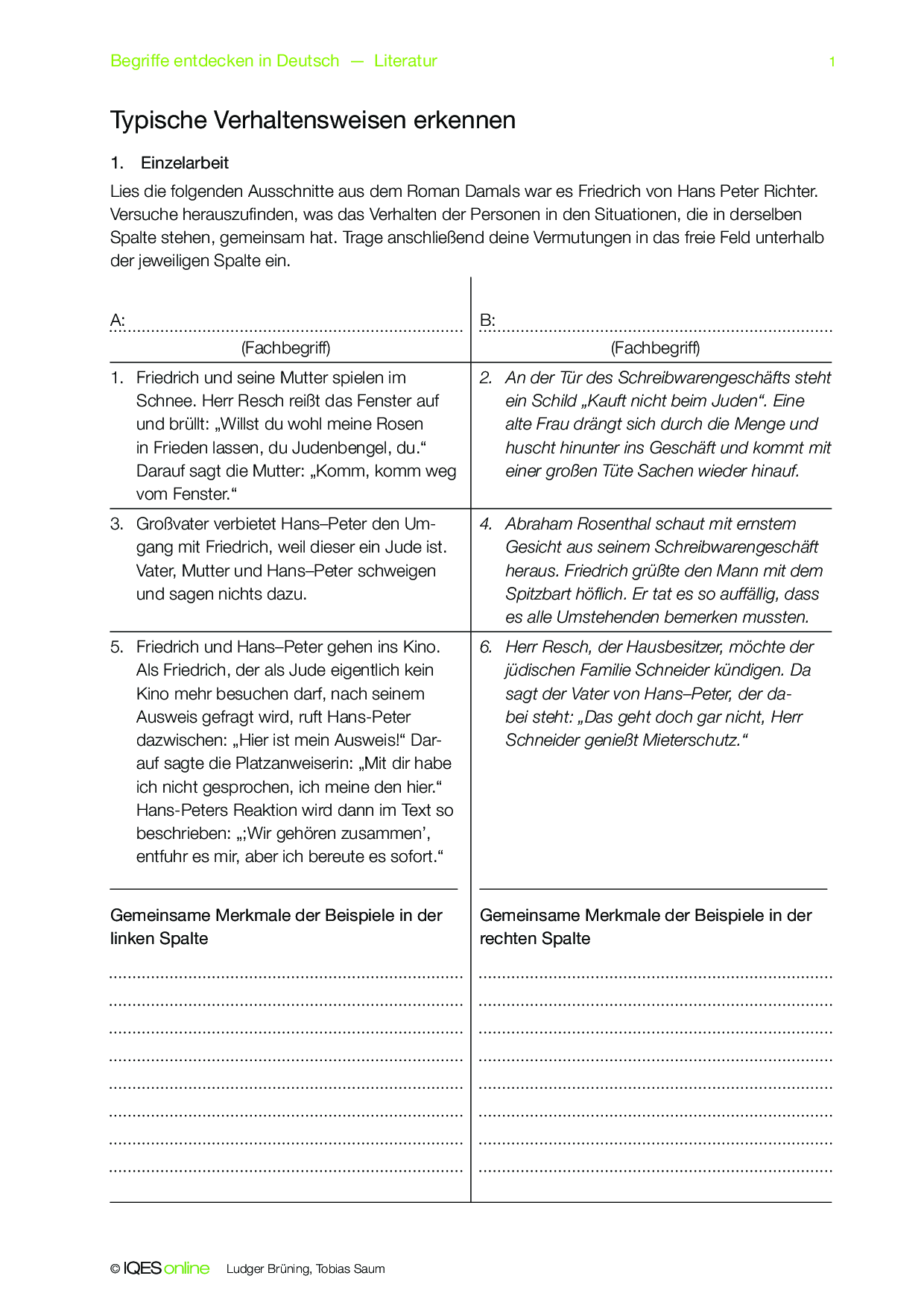 Mit diesem Concept Attainment erarbeiten die Lernenden den Unterschied zwischen Zivilcourage und angepasstem Verhalten am Beispiel des Verhaltens von Personen in dem Roman Damals war es Friedrich von Hans Peter Richter. Es sind Lösungshinweise vorhanden.