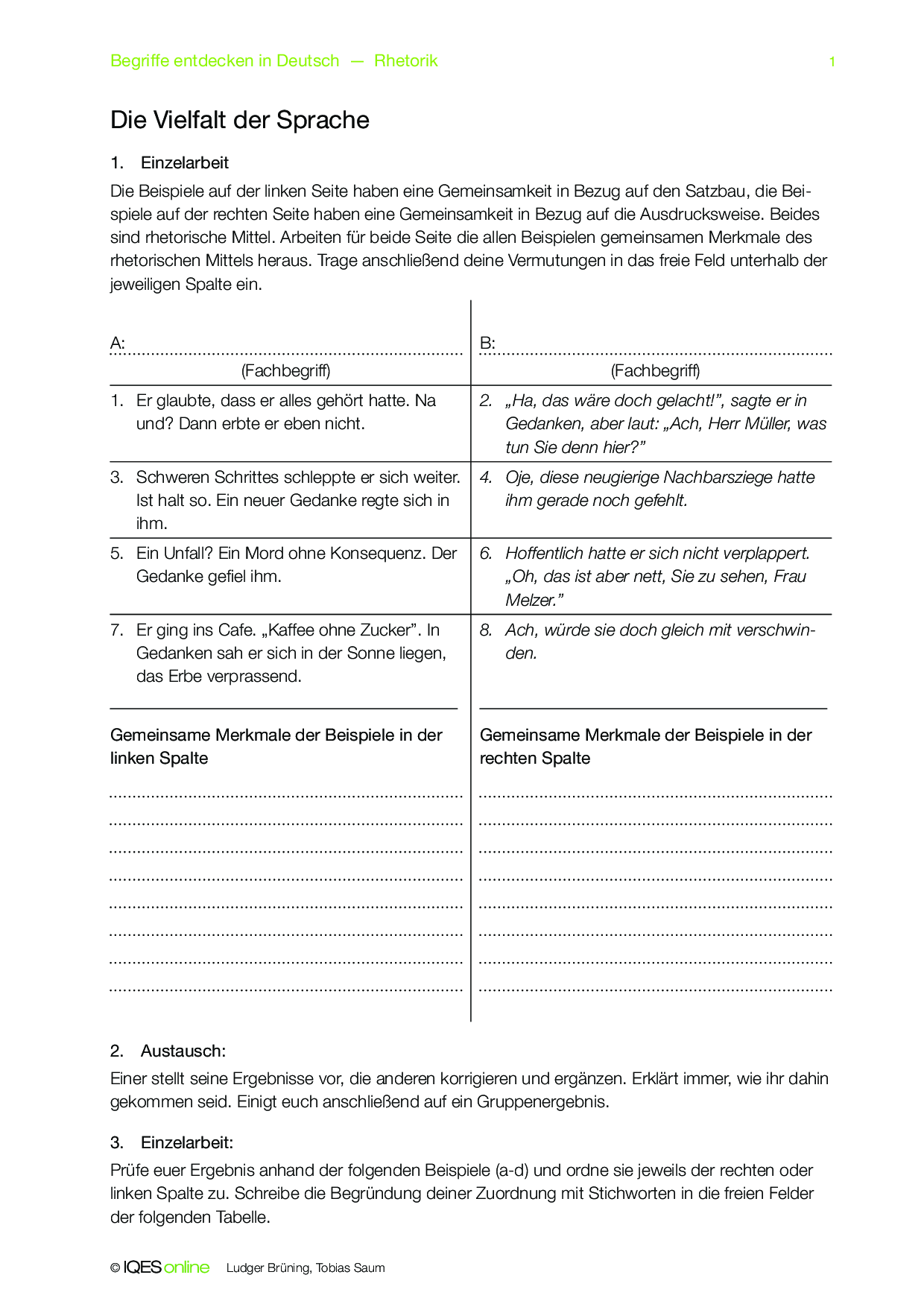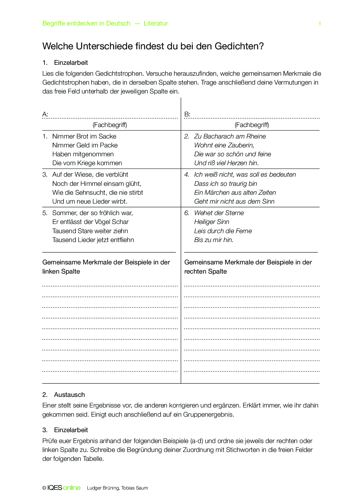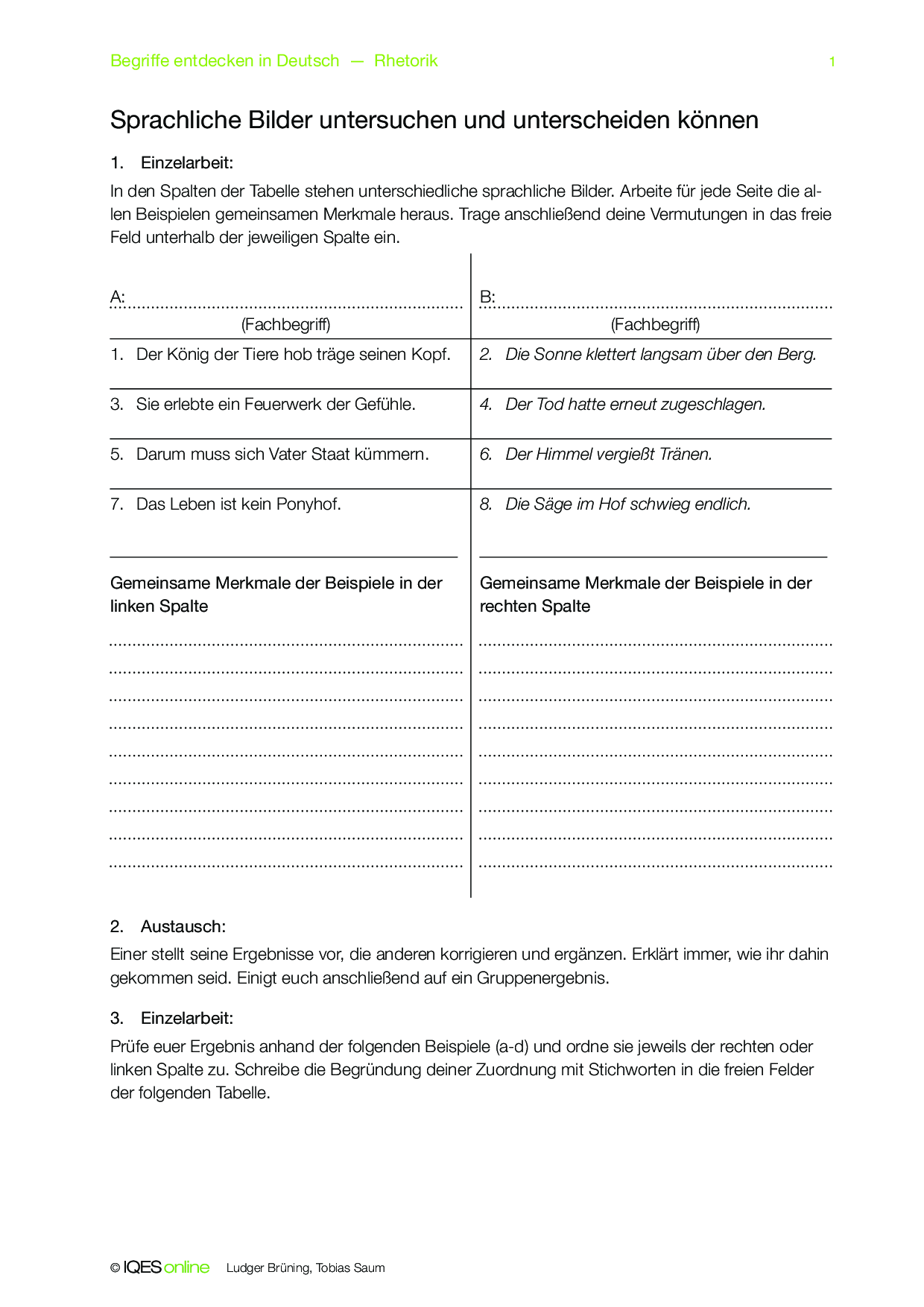 Mit diesem Concept Attainment sollen die Schülerinnen und Schüler den Unterschied zwischen Alliteration und Anapher erlernen. Die Aufgaben können in Einzel- und Gruppenarbeit gelöst und selbständig korrigiert werden.