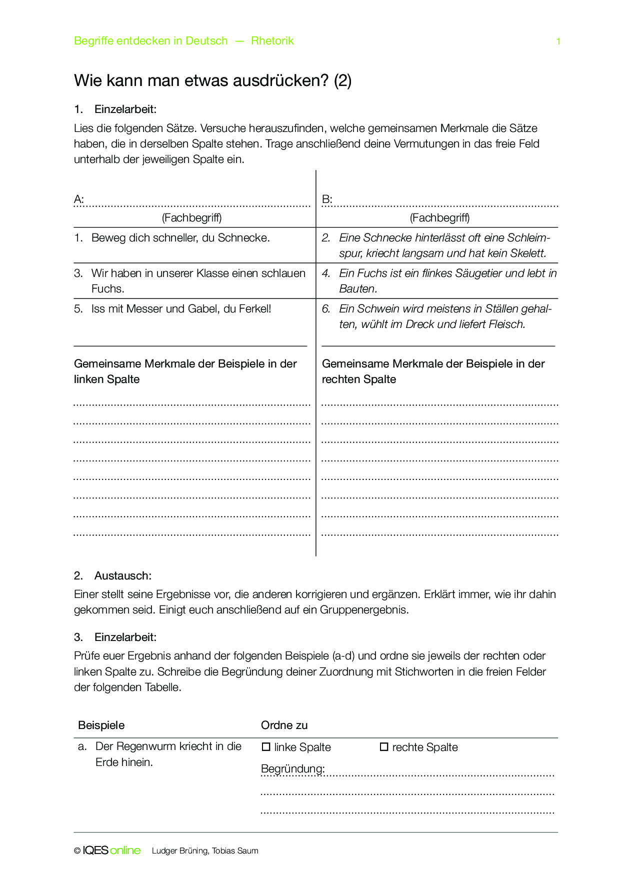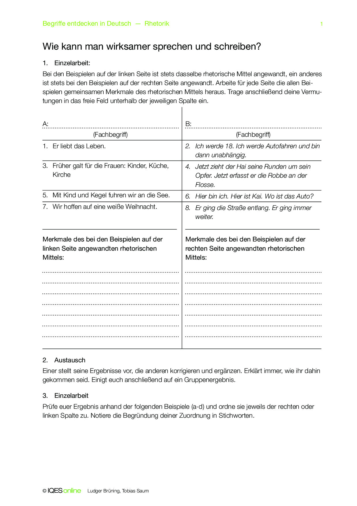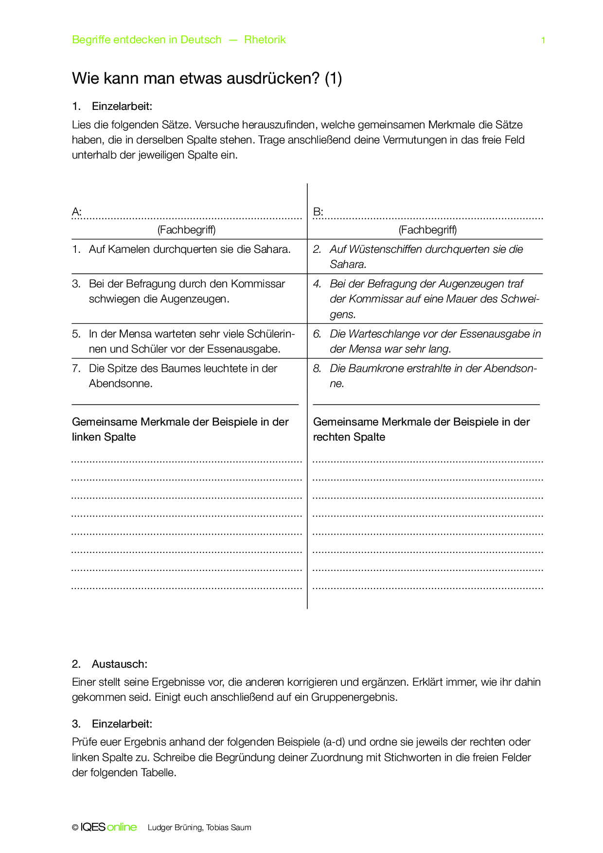 Mit diesem Concept Attainment sollen die Schülerinnen und Schüler den Unterschied zwischen Alliteration und Anapher erlernen. Die Aufgaben können in Einzel- und Gruppenarbeit gelöst und selbständig korrigiert werden.