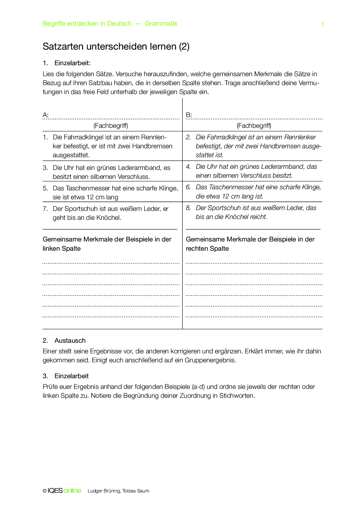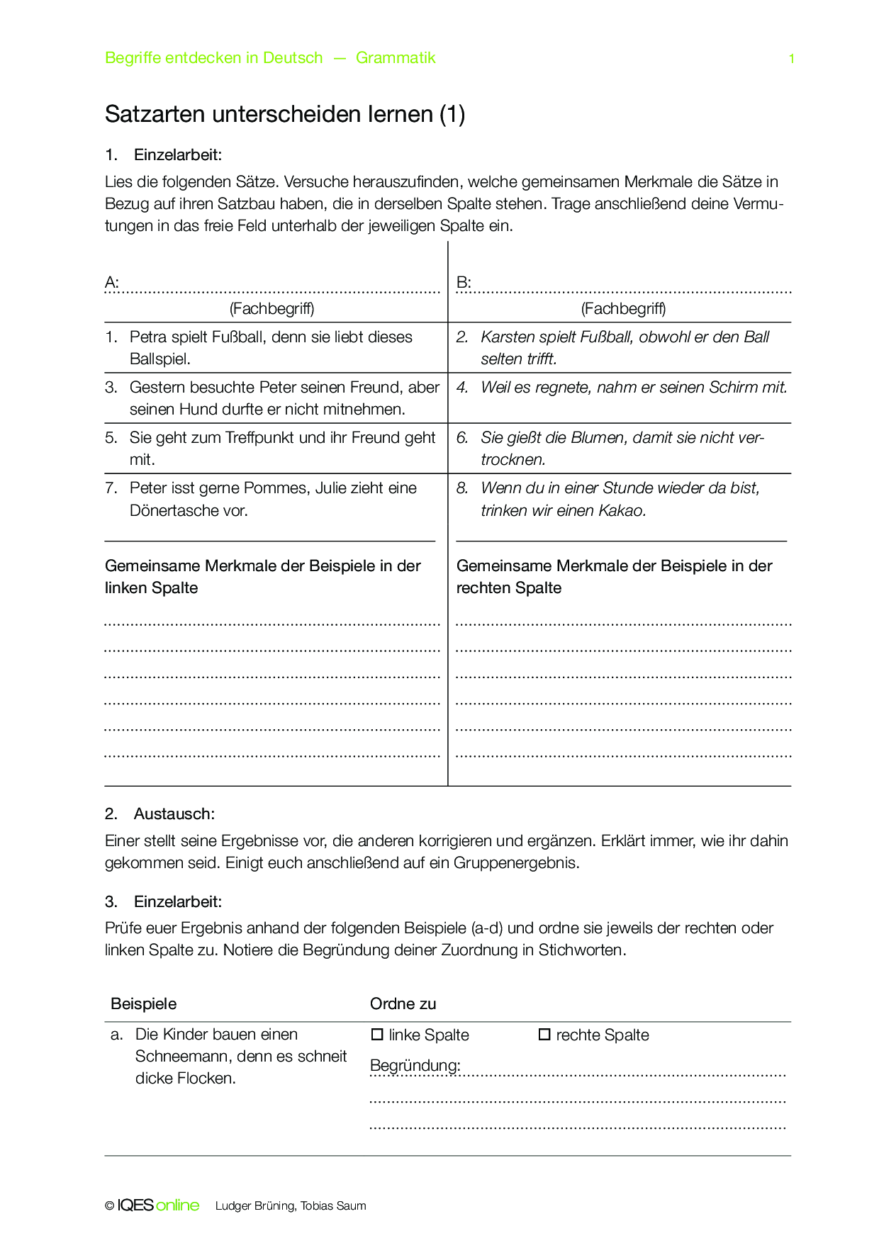 Mit diesem Concept Attainment erarbeiten die Lernenden den Unterschied zwischen einer Satzreihe und einem Satzgefüge. Dazu sind Lösungshinweise vorhanden.