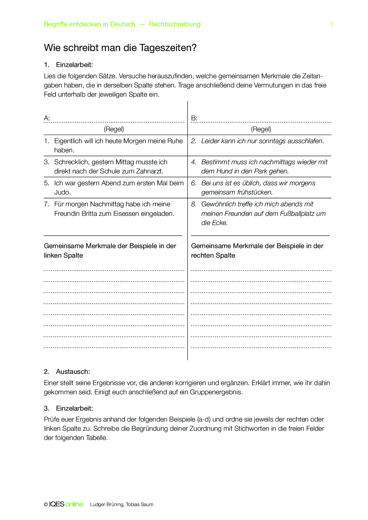 Übung für den Deutschunterricht, mit der die Schüler und Schülerinnen die Gross- und Kleinschreiberegeln für die Tageszeiten (heute Morgen/morgens) lernen.