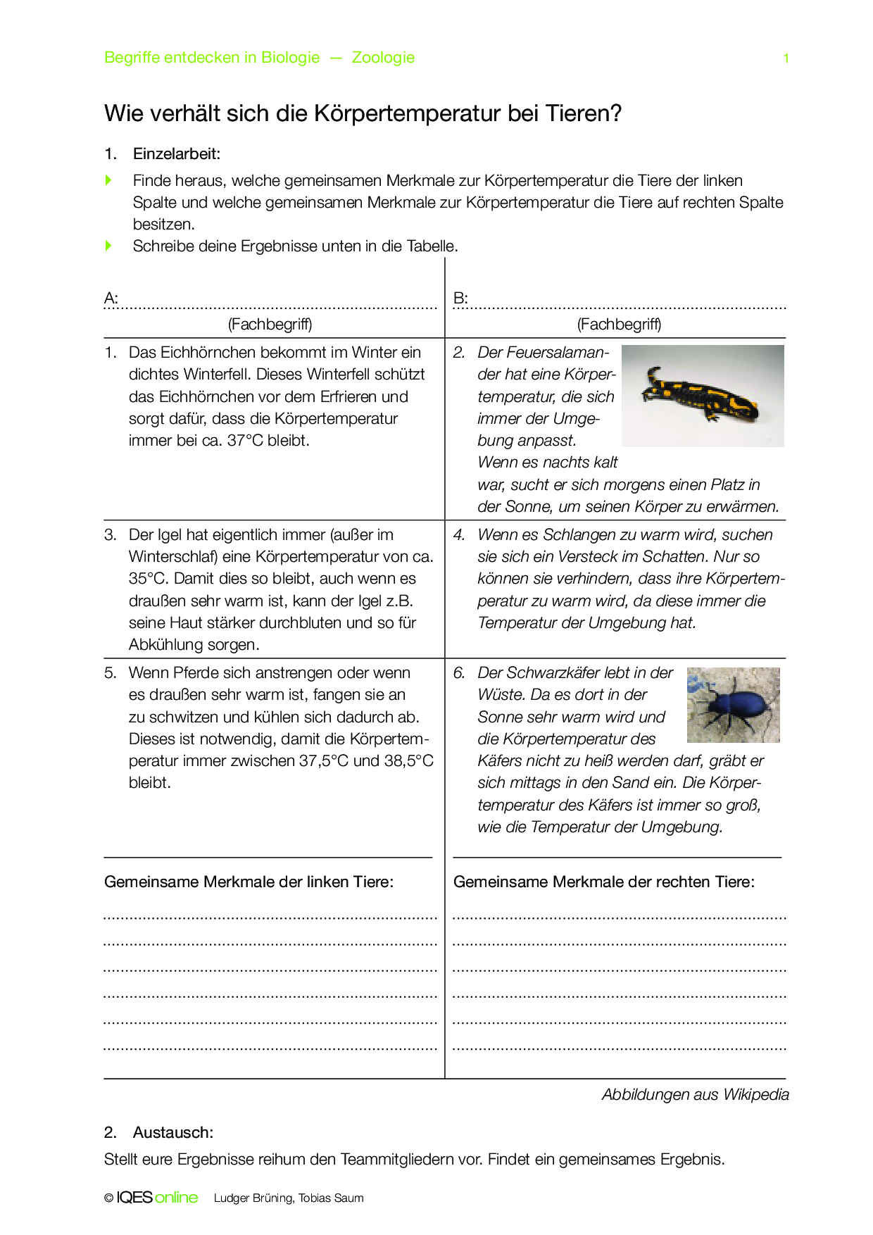 In diesem Concept Attainment wird der Unterschied zwischen wechselwarmen und gleichwarmen Tieren erarbeitet. Dazu sind Lösungshinweise vorhanden.