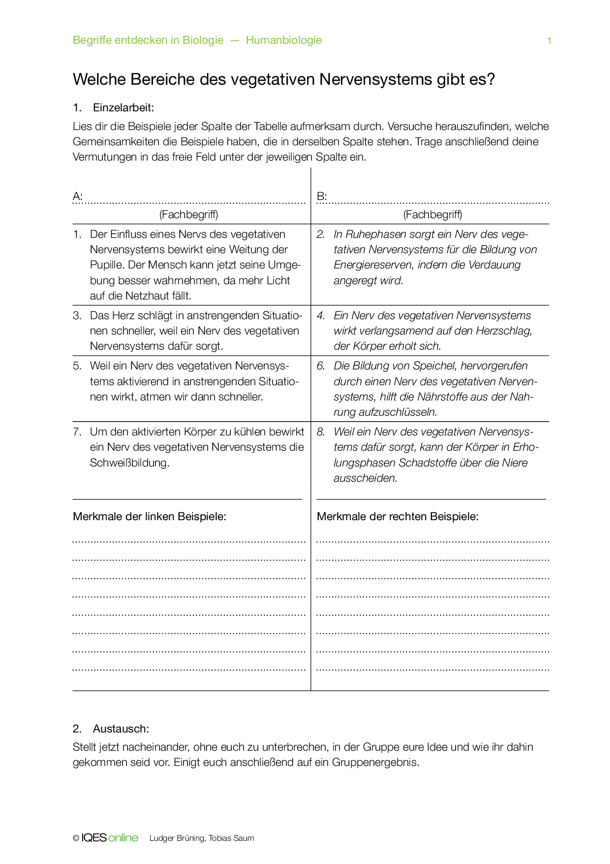Mit diesem Concept Attainment kann der Unterschied zwischen Sympathikus und Parasympathikus erarbeitet werden. Dazu sind Lösungshinweise vorhanden.