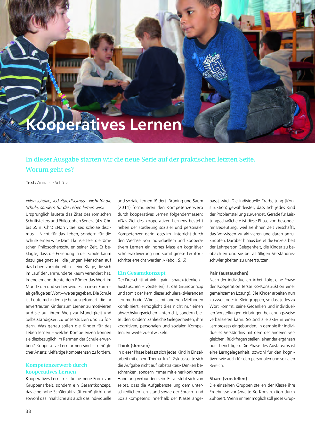 Kooperatives Lernen ist keine neue Form von Gruppenarbeit, sondern ein Gesamtkonzept, das eine hohe Aktivität der Lernenden ermöglicht und sowohl das inhaltliche als auch das individuelle und soziale Lernen fördert. Auch Kindergartenkinder können stark von kooperativen Lernformen profitieren. Aufgrund ihrer Entwicklung brauchen sie jedoch angepasste methodische Settings und eine etwas andere Begleitung als ältere Kinder und. Sie finden hier Praxishilfen, Ideenkataloge und Fachartikel. Diese stammen von Praktikerinnen, die als Kindergartenlehrpersonen und als Kursleitende unterrichten.