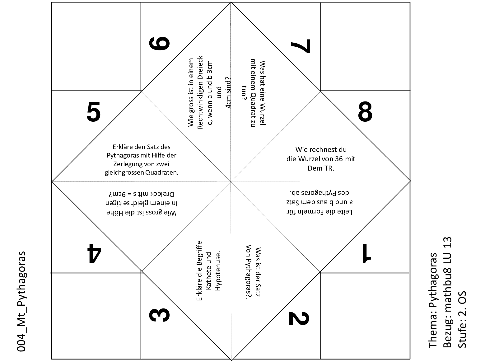 Mit diesem Schnipp-Schnapp lässt sich der Satz des Pythagoras spielerisch üben (Satz des Pythagoras, Kathete, Hypotenuse, Wurzel, Berechnungen).