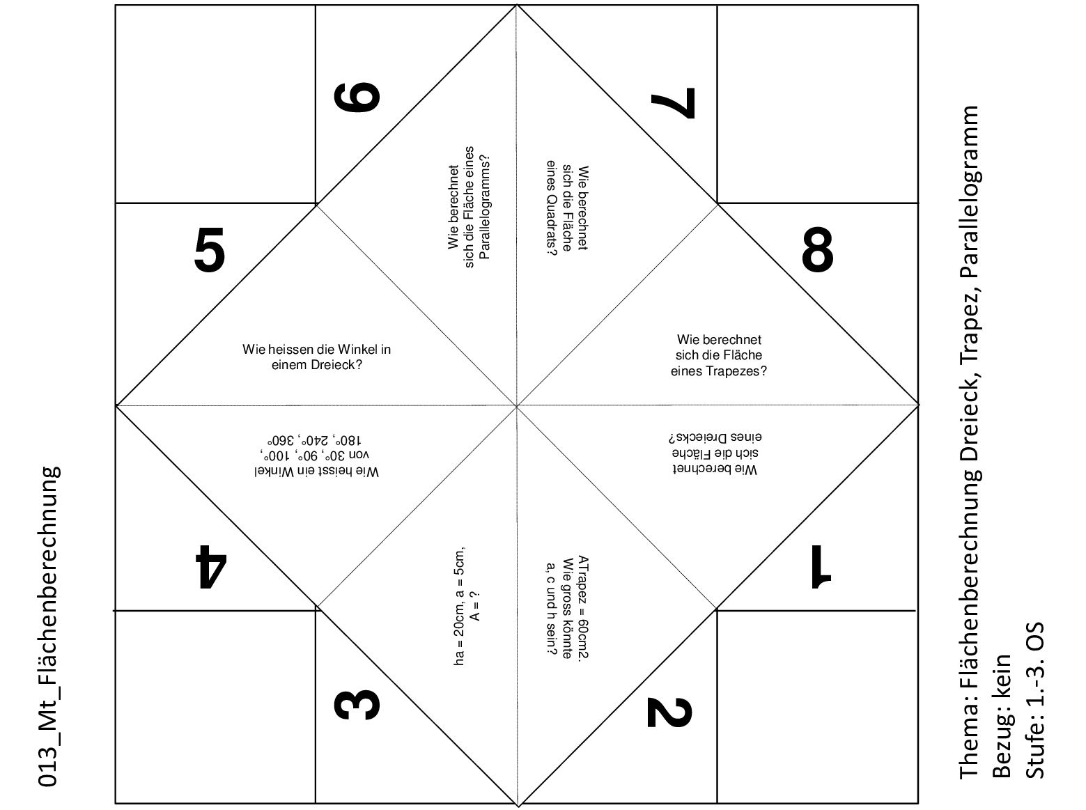 Mathematik: Flächenberechnung Dreieck, Trapez, Quadrat, Parallelogramm, Winkelnamen
