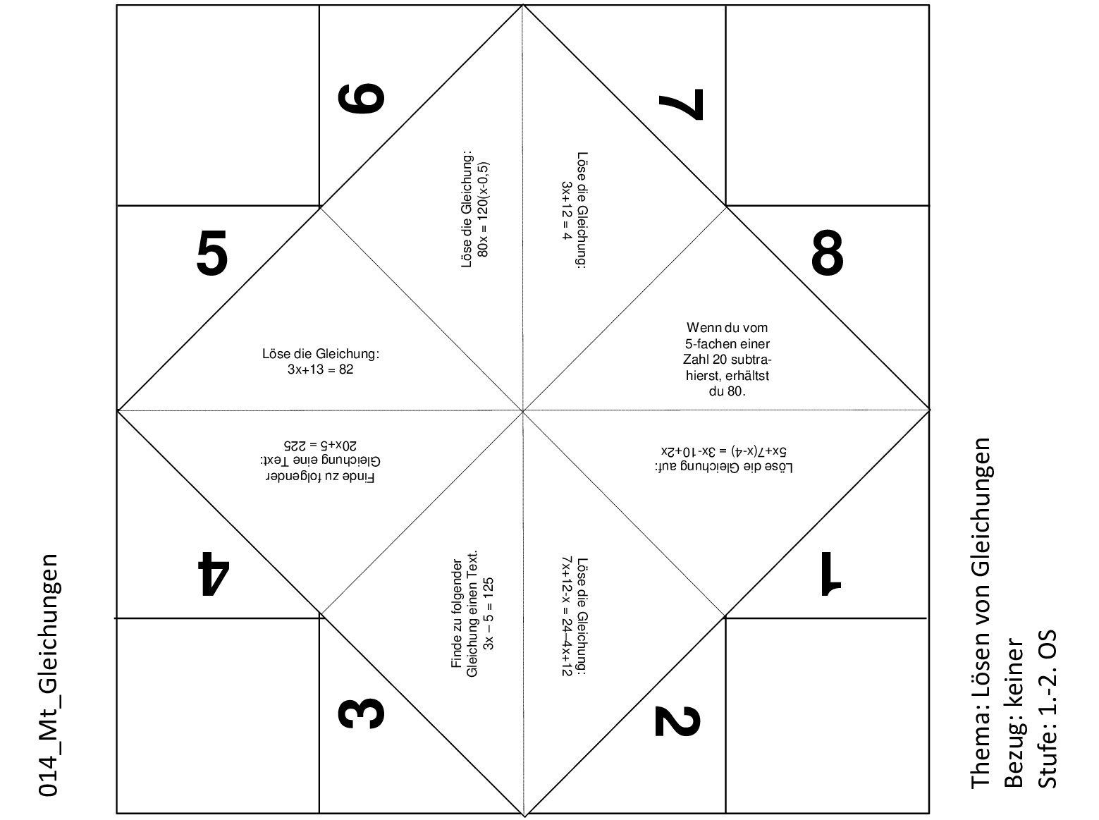 Mit diesem Schnipp-Schnapp können die Lernenden ihr Wissen zur Lösung von Gleichungen mit einer Variable überprüfen. Dazu sind unterschiedliche Gleichungen aufgeführt.