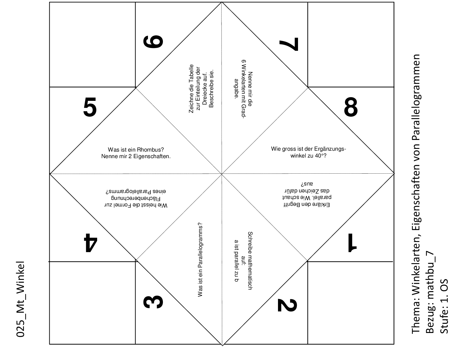 Mit diesem Schnipp-Schnapp lassen sich die verschieden Winkelarten und Eigenschaften von Parallelogrammen üben.