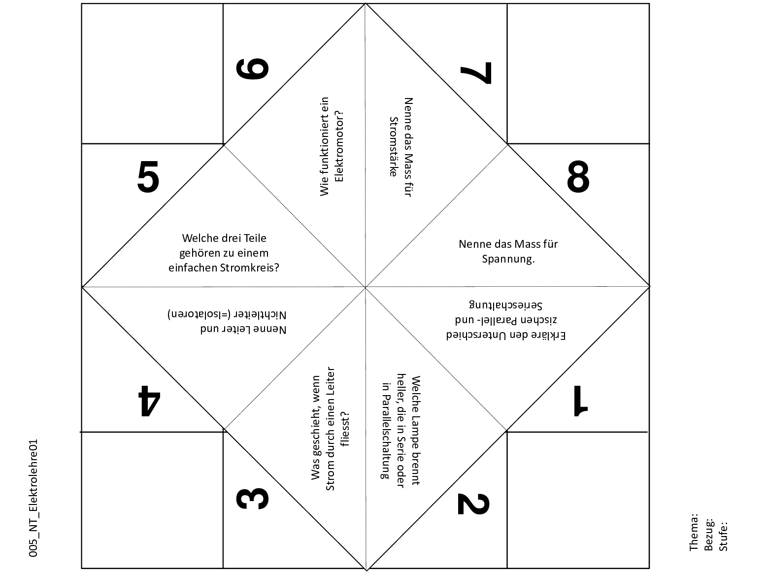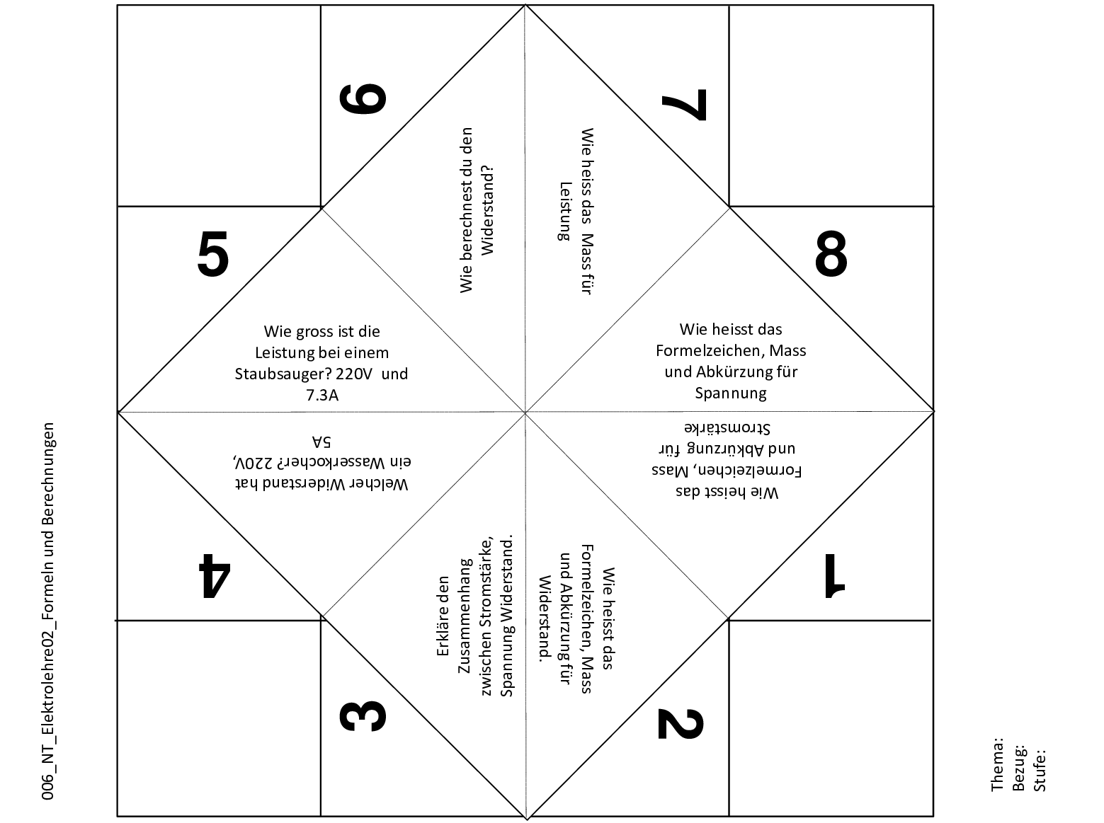 Dieses Schnipp-Schnapp enthält Fragen zum Fach Physik wie der Berechnung von Stromspannung.