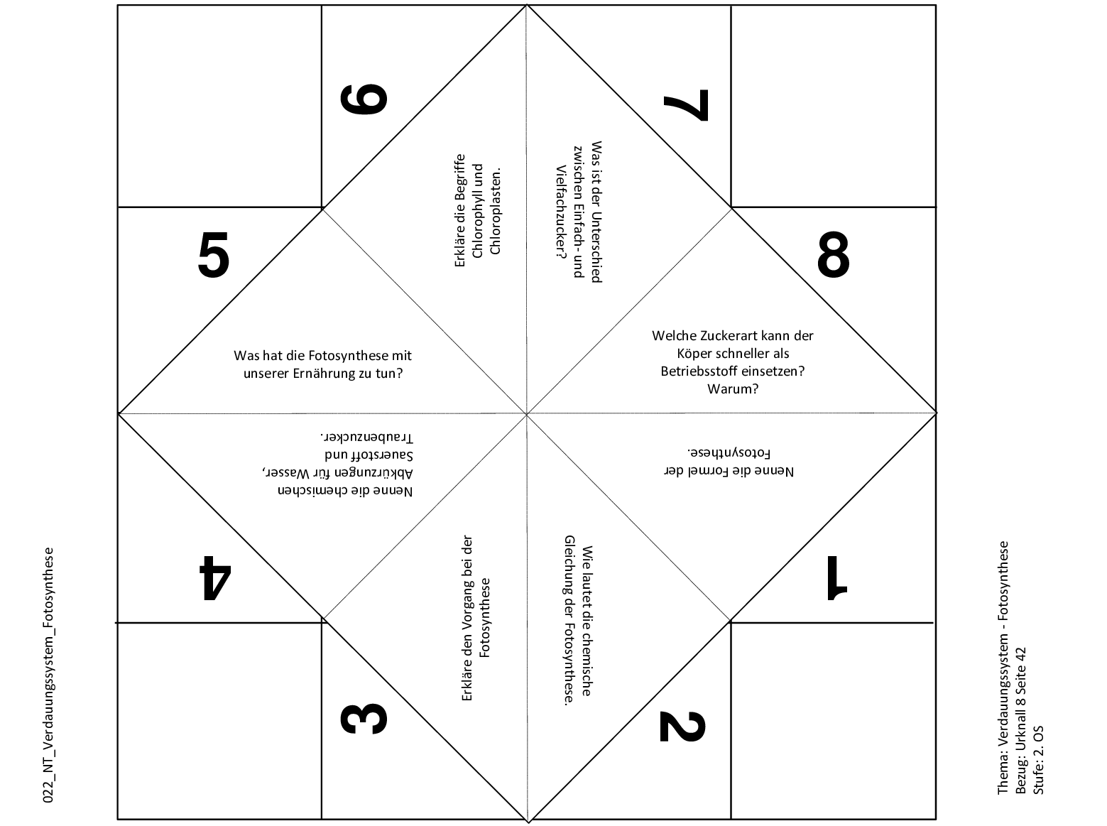 In diesem Schnipp-Schnapp-Spiel können sich die Schüler und Schülerinnen spielerisch Wissen über die Fotosynthese, Wasser, Sauerstoff, Einfachzucker, Mehrfachzucker und Chlorophyll aneignen.