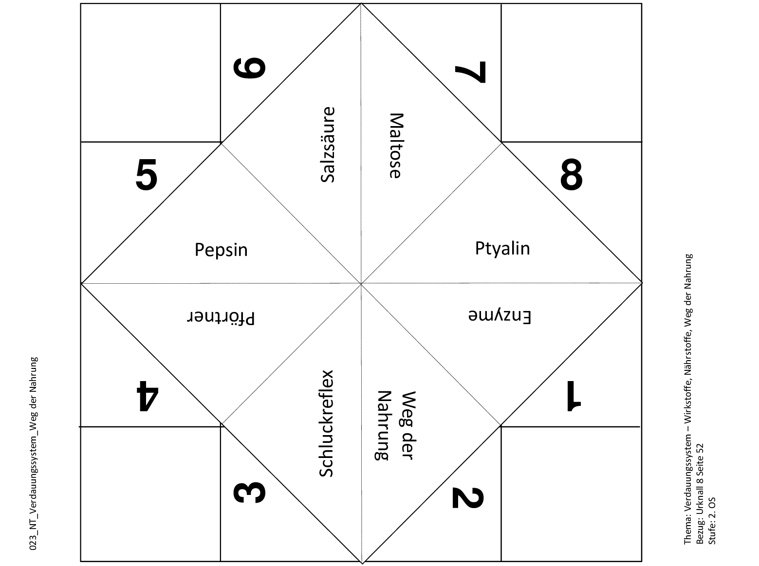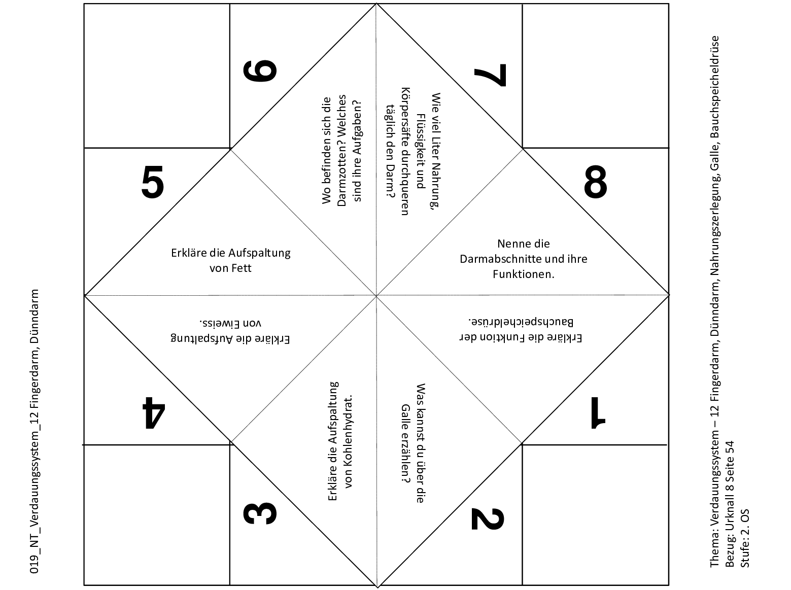 Mit diesem Schnipp-Schnapp können die Lernenden ihr Wissen über das Verdauungssystem überprüfen. Dabei werden Fragen zu Maltose, Enzyme, Pepsin, Ptyalin, Salzsäure, Pförtner und Schluckreflex gestellt.