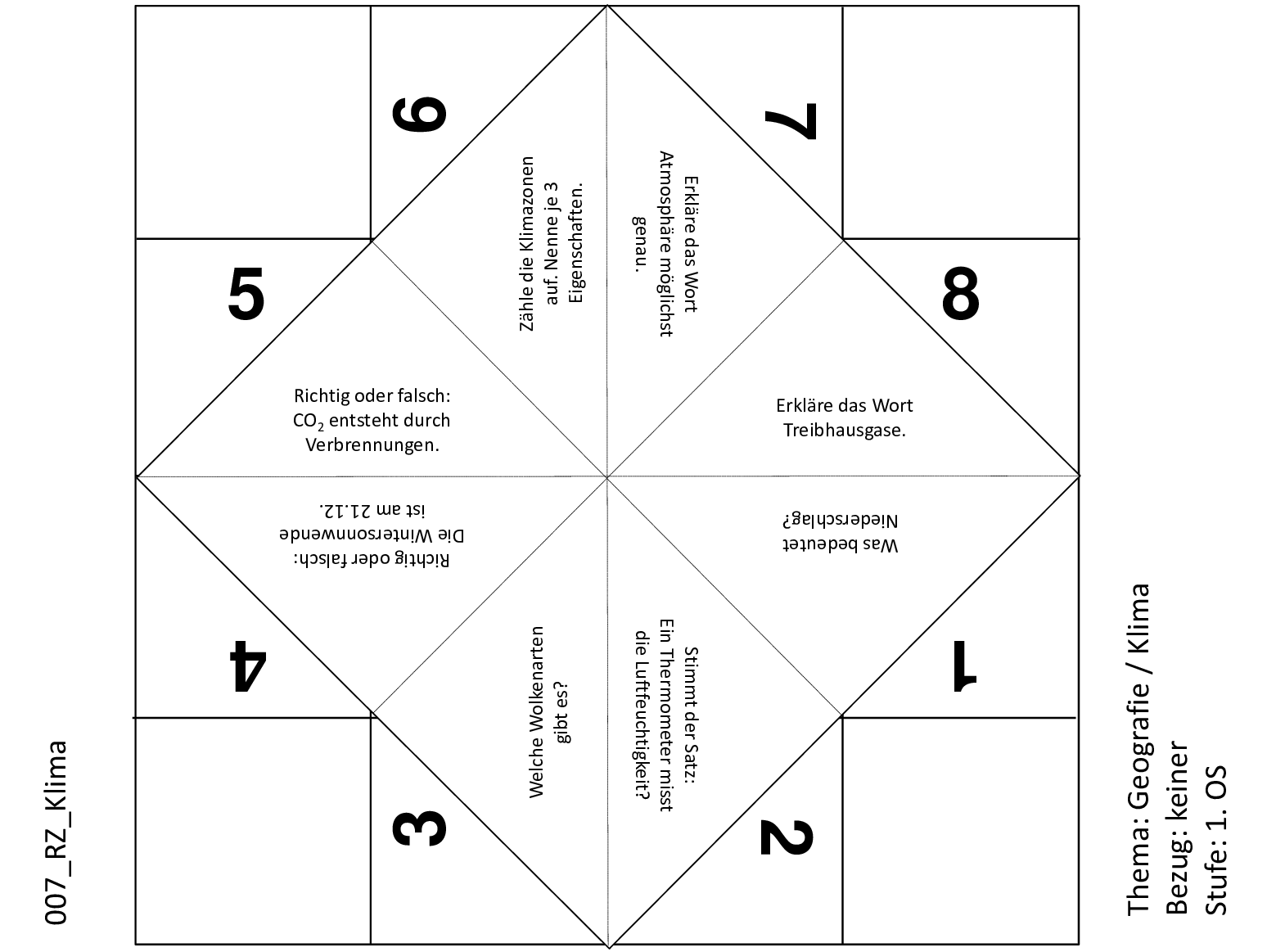 Mit diesem Schnipp-Schnapp können die Lernenden ihr Wissen rund ums Klima unter Beweis stellen. Die Fragen beziehen sich auf die Themen Niederschlag, Atmosphäre, Treibhausgase und Klimazonen.