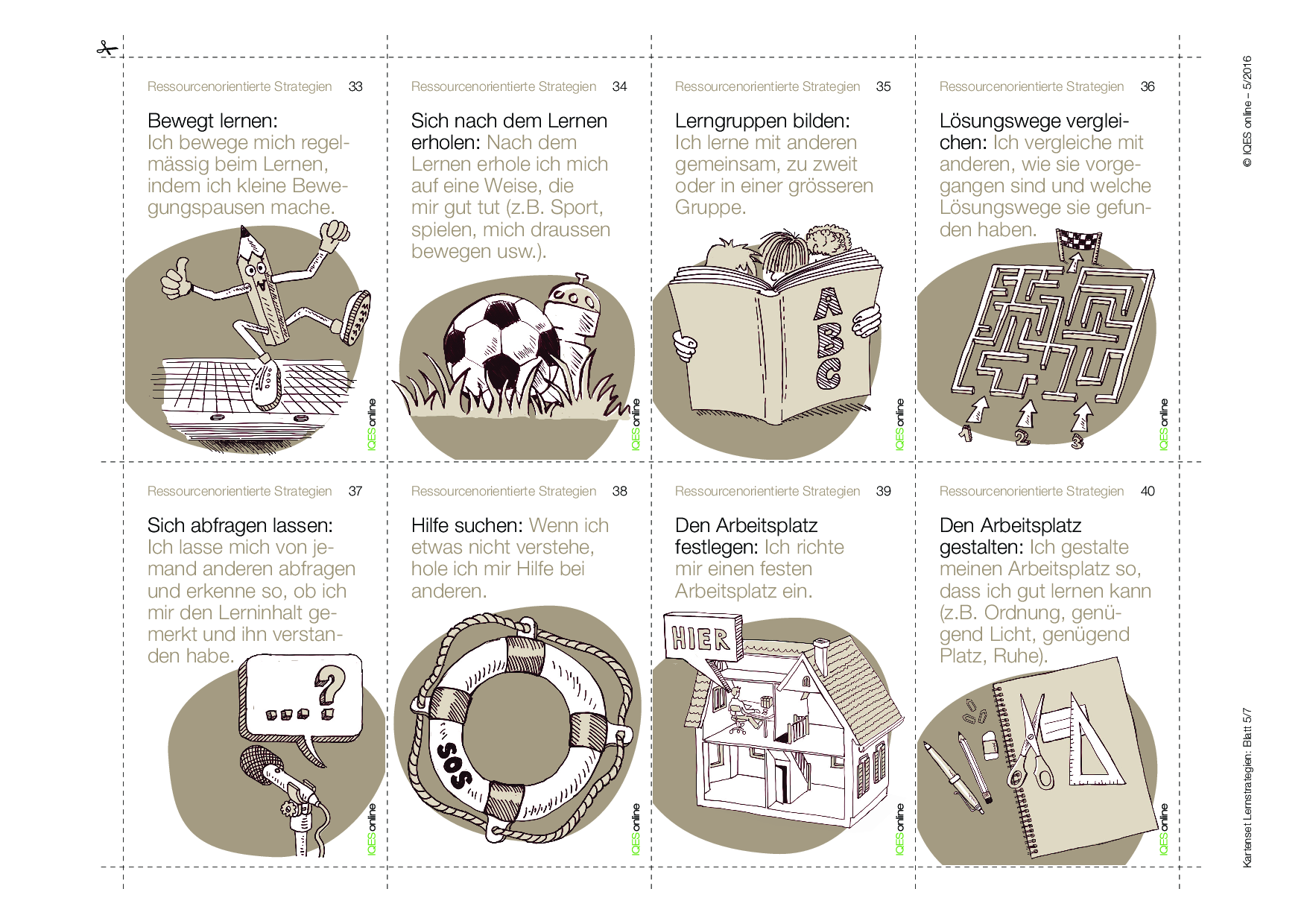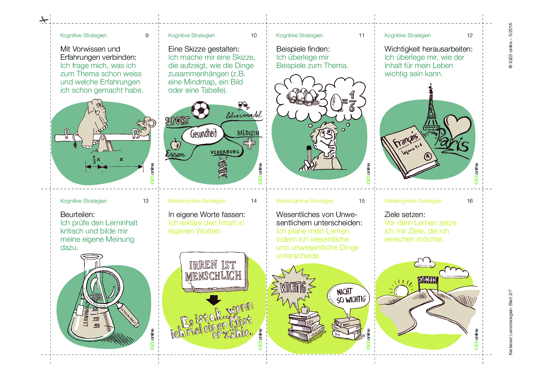 - Anleitung zur Selbstreflexion und Selbstregulierung des Lernens mit Hilfe der eingeführten Lernstrategie-Karten