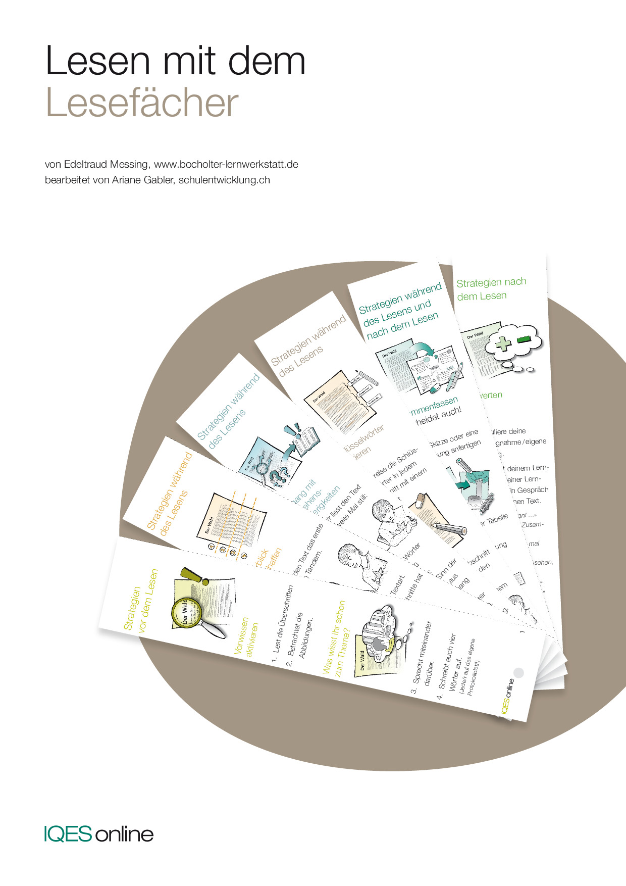 Der Lesefächer, ein praktisches Instrument, um insbesondere schwächere Leser:innen zum sinnerfassenden Lesen zu führen und dieses in Partnerarbeit zu trainieren. Der Leseprozess wird in drei Phasen strukturiert: vor dem Lesen – während des Lesens – nach dem Lesen. Dabei werden die wichtigsten Lesestrategien aufgegriffen.