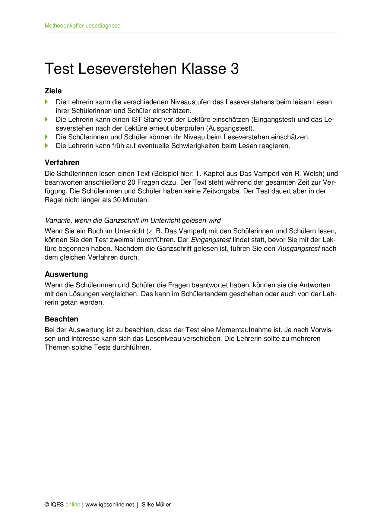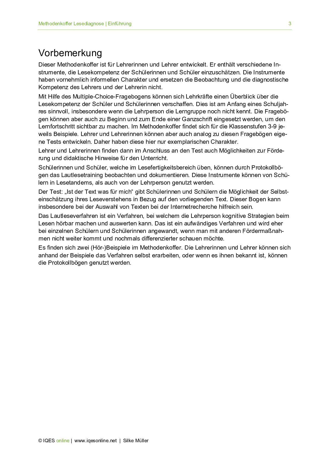 Methodenkoffer Lesediagnose - Einführung