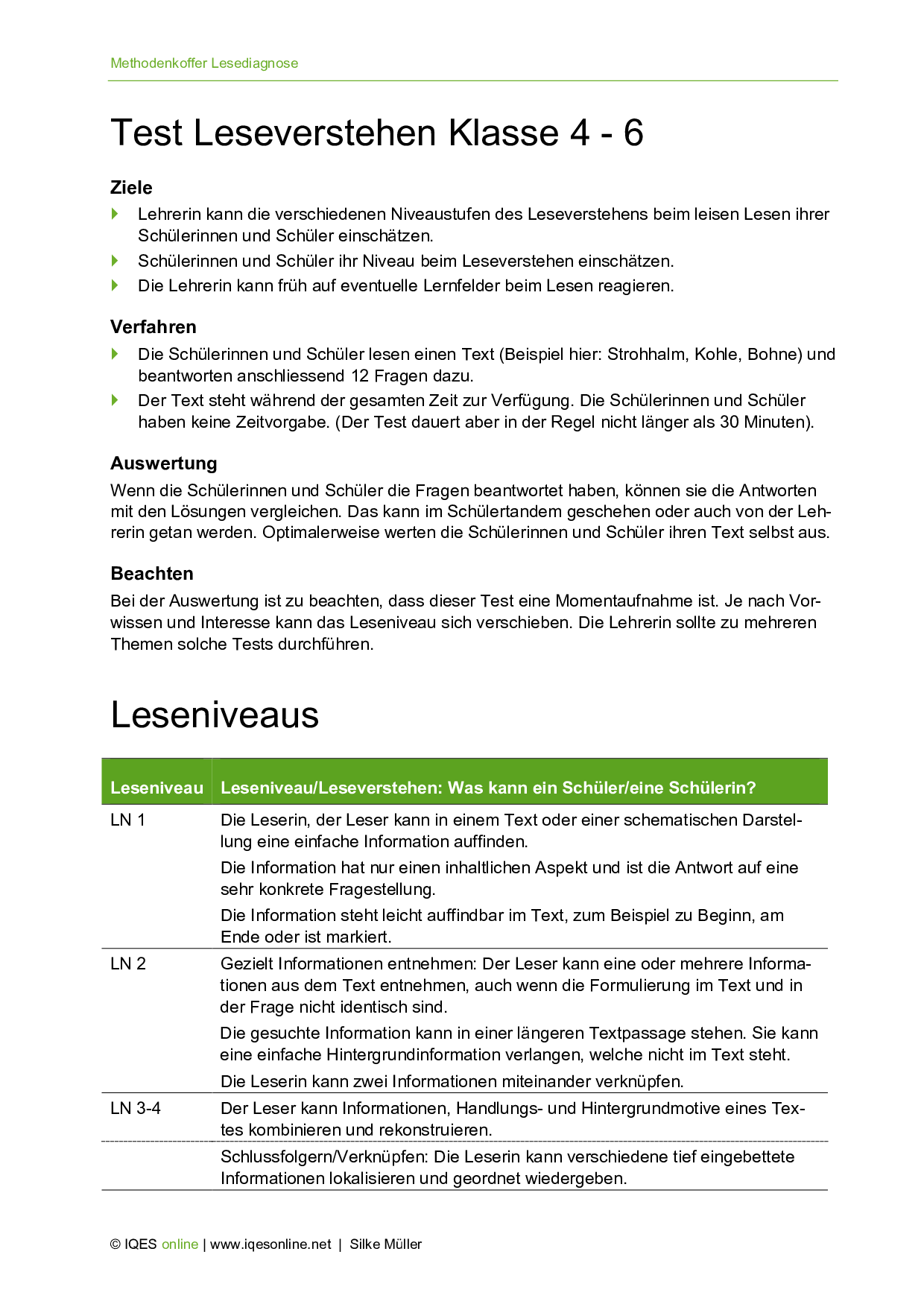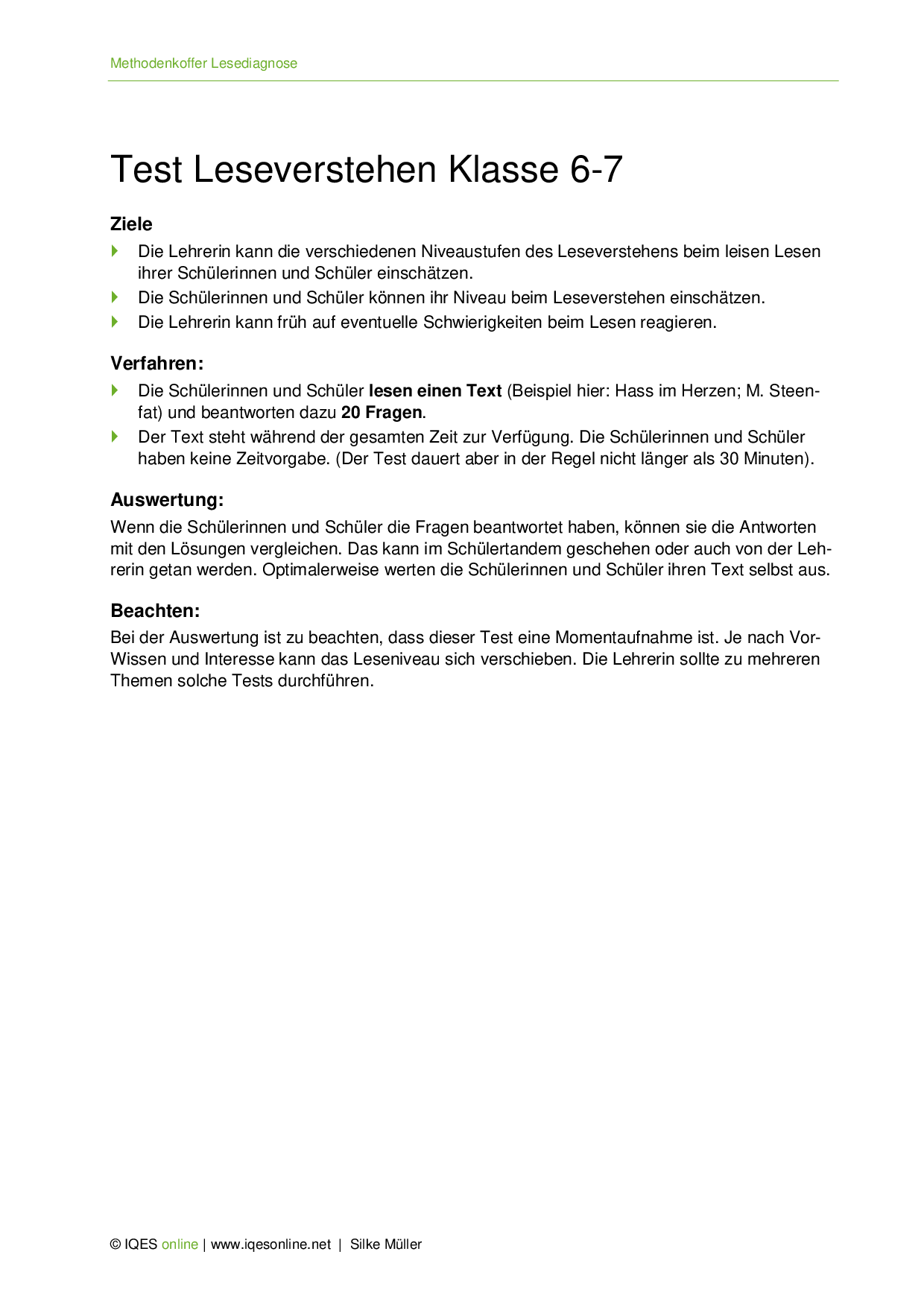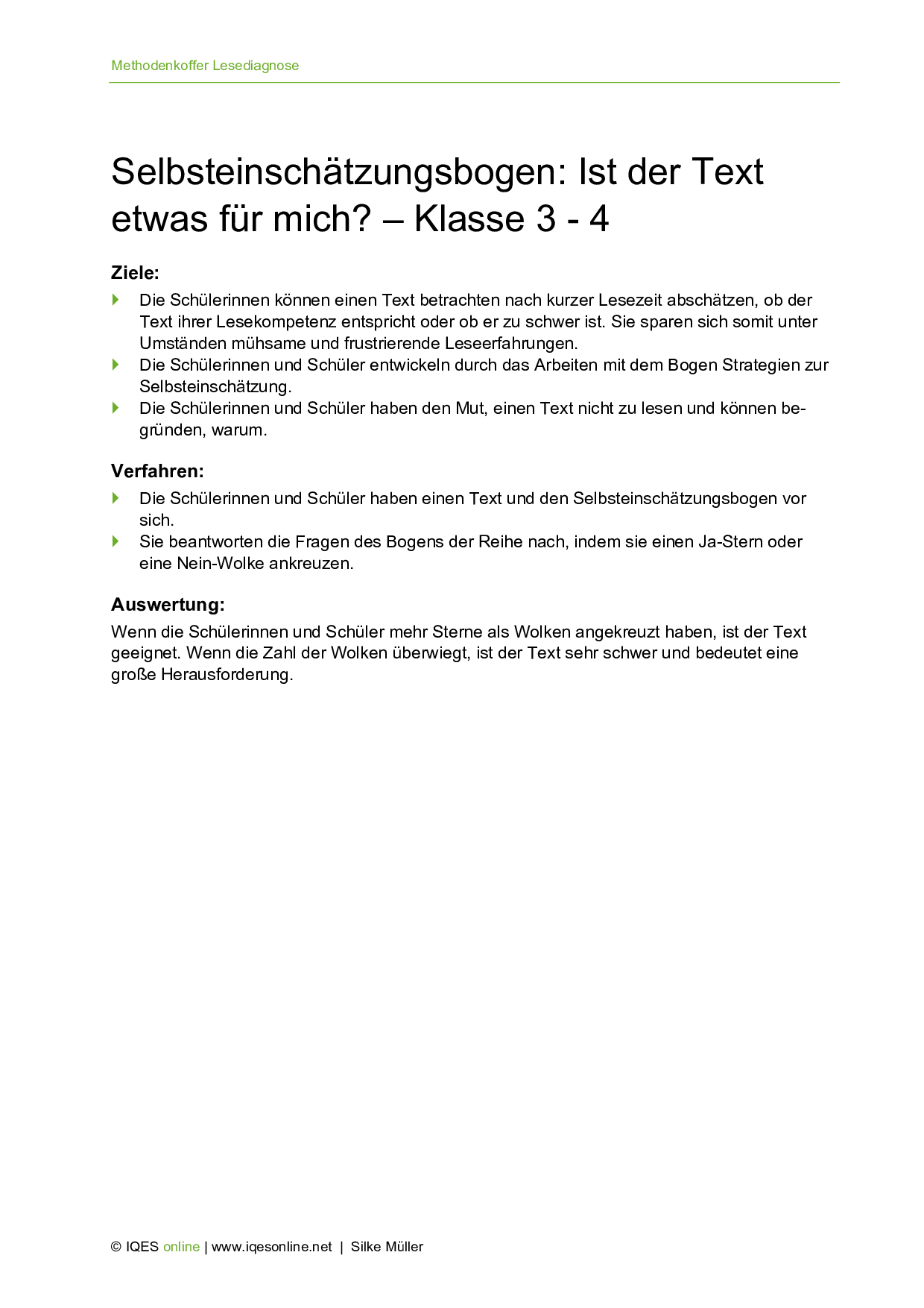 Aus: Methodenkoffer Lesediagnose