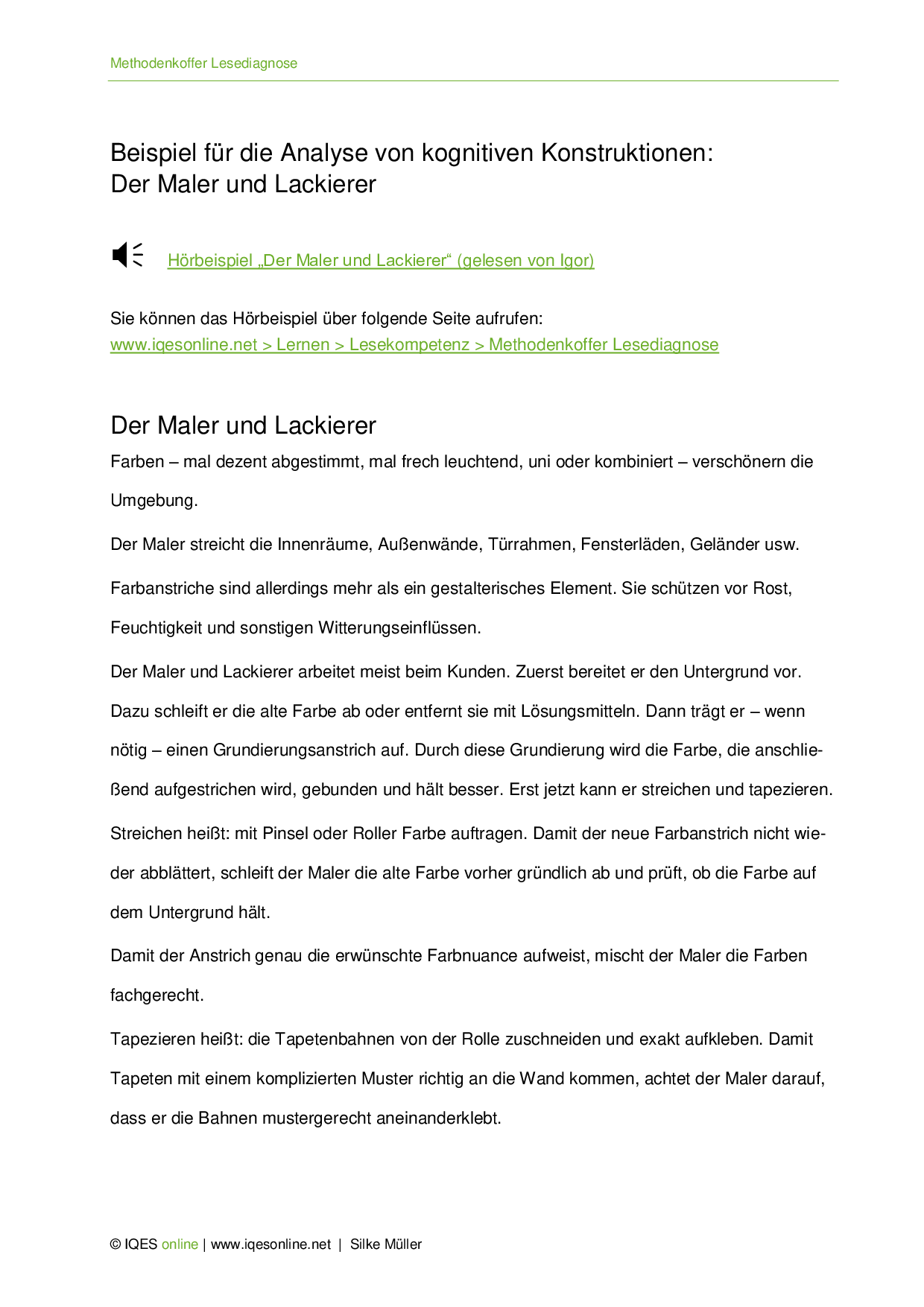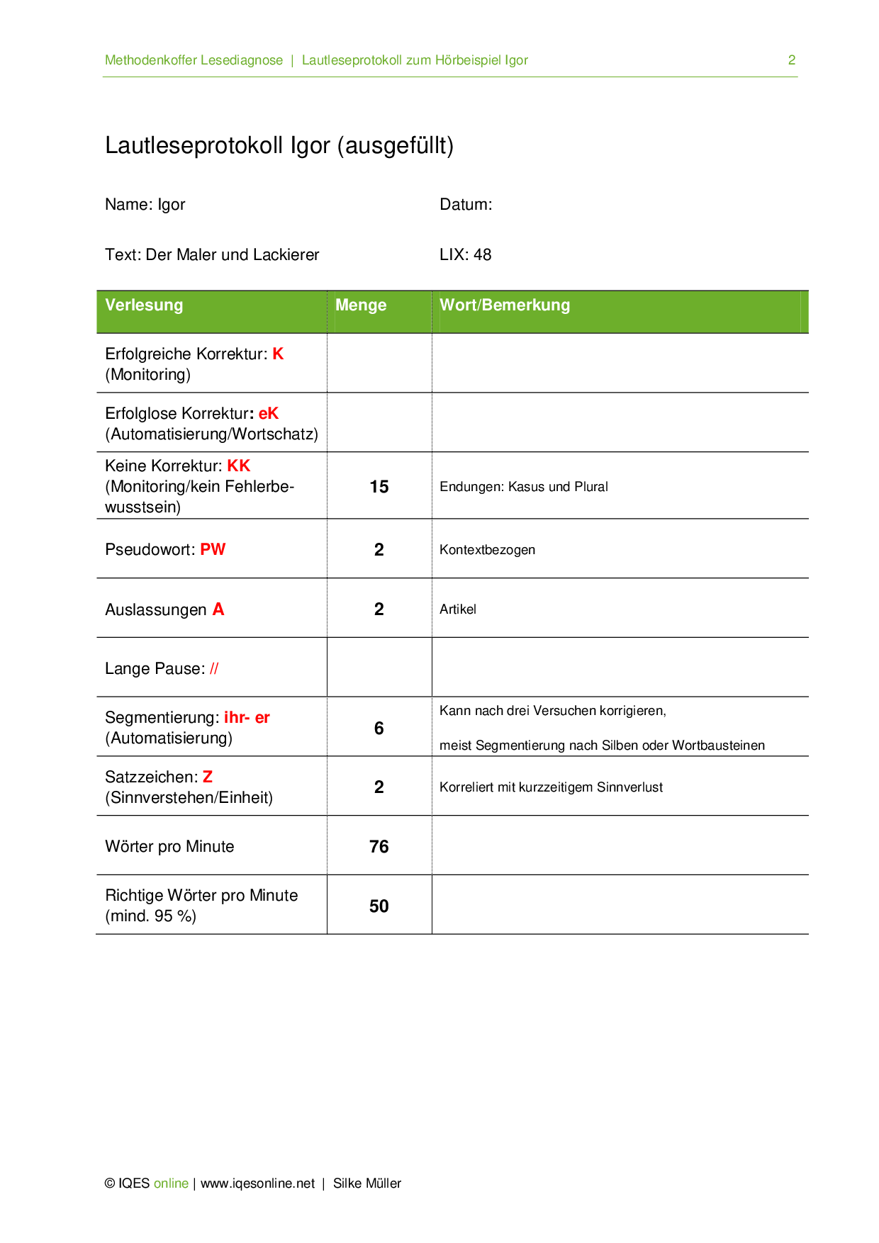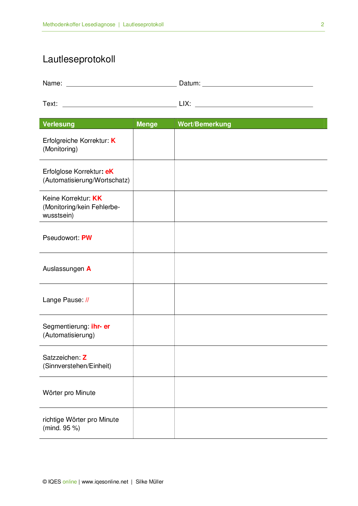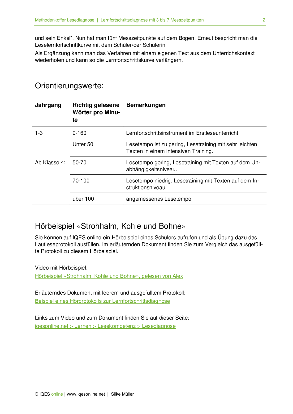 Aus: Methodenkoffer Lesediagnose