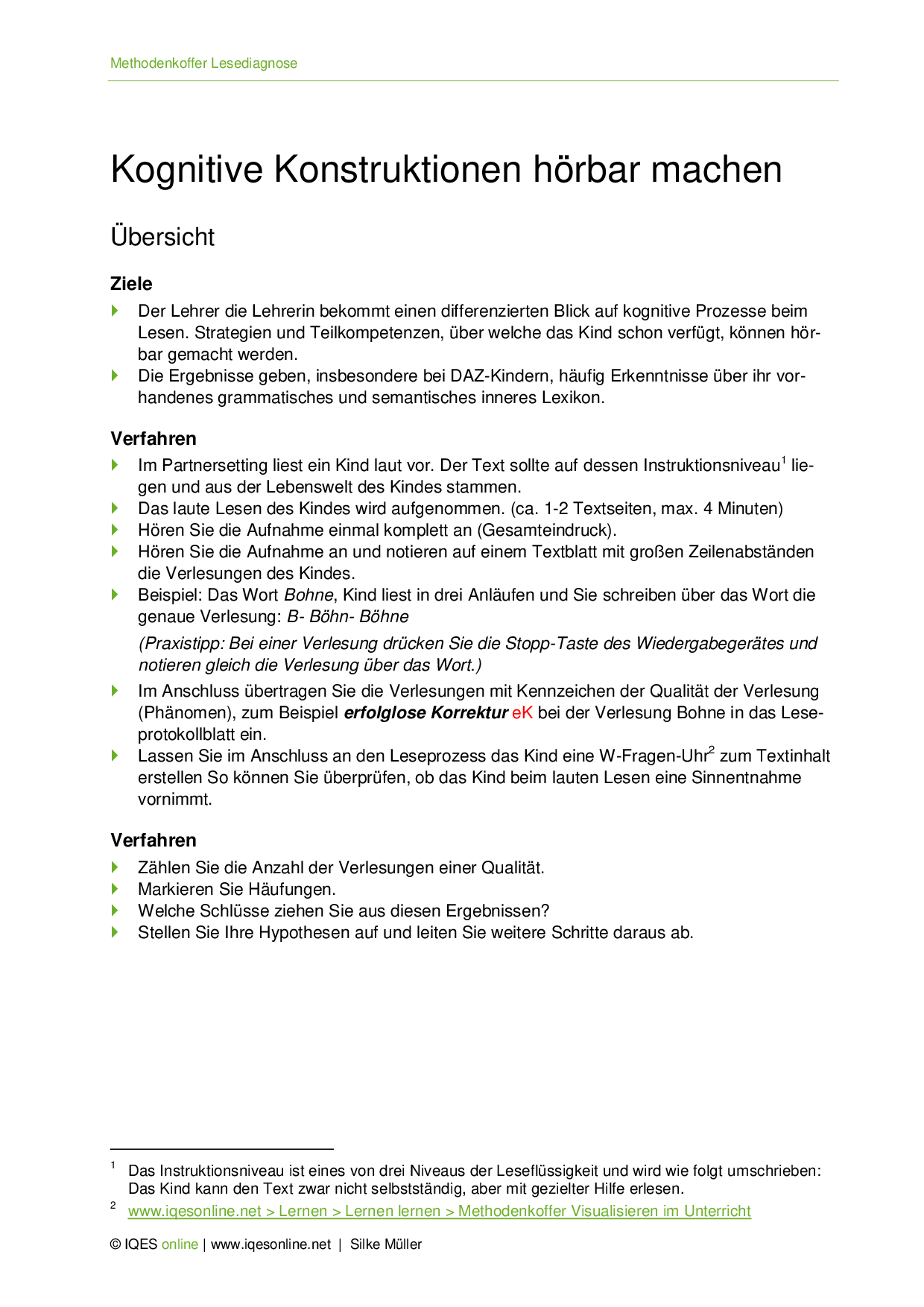 Informelle Lesediagnostik: Kognitive Konstruktionen heraushören