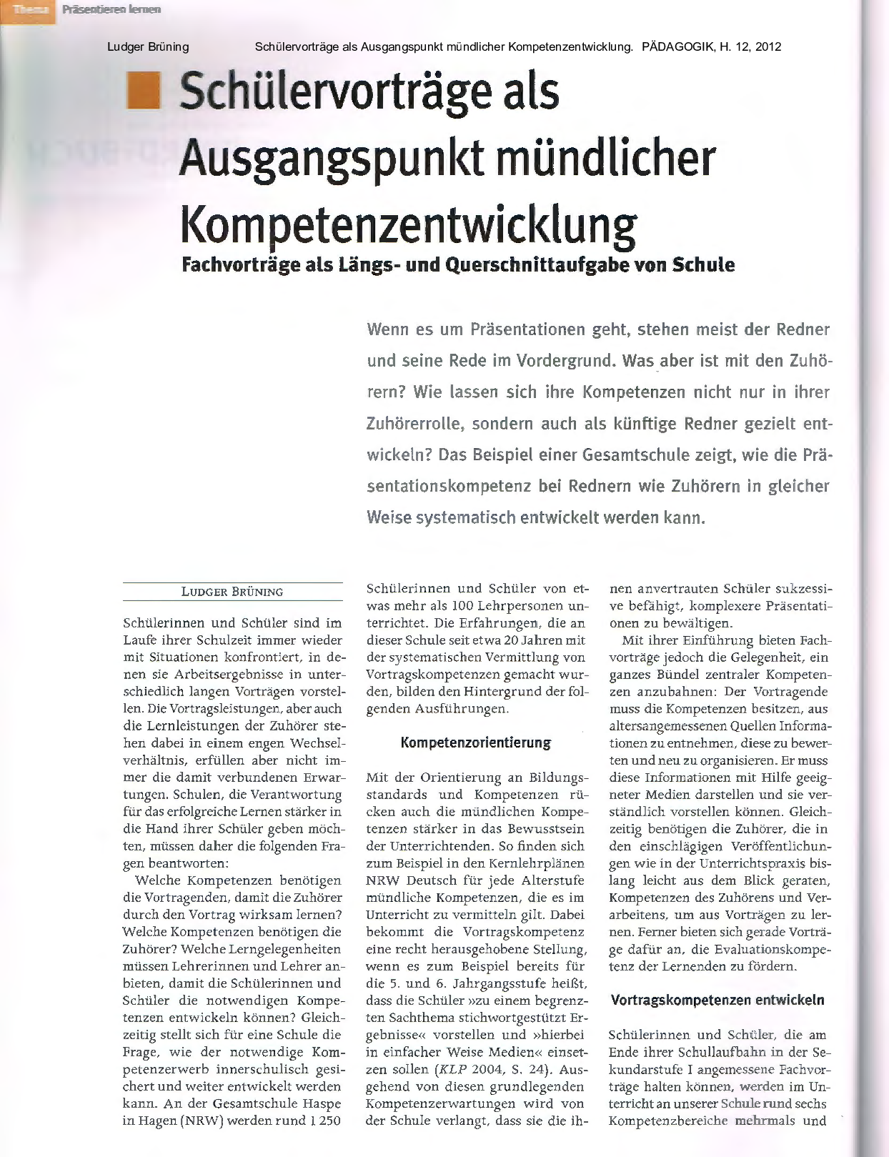 Fachartikel: Schülervorträge als Ausgangspunkt mündlicher Kompetenzentwicklung