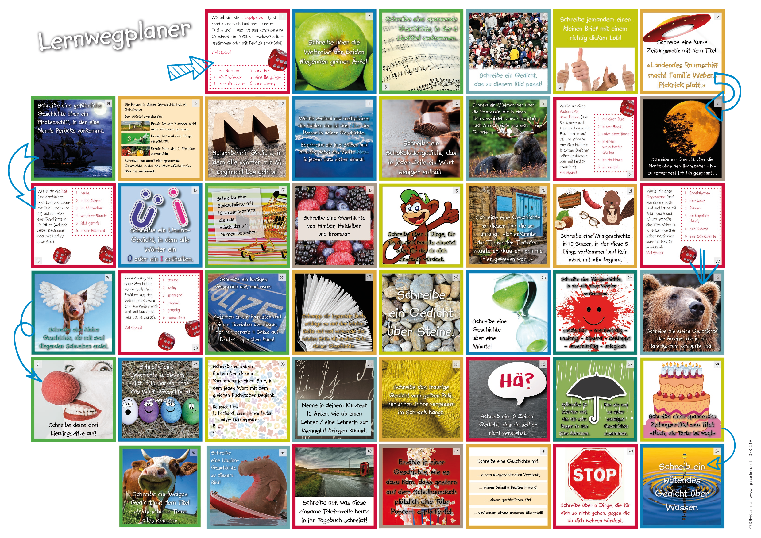 Der Schreibwegplaner ermöglicht es den Lernenden, situativ und ganz nach Lust und Laune, den passenden Schreibanlass auszuwählen und dabei gleichzeitig ihren persönlichen Schreibweg zu visualisieren.