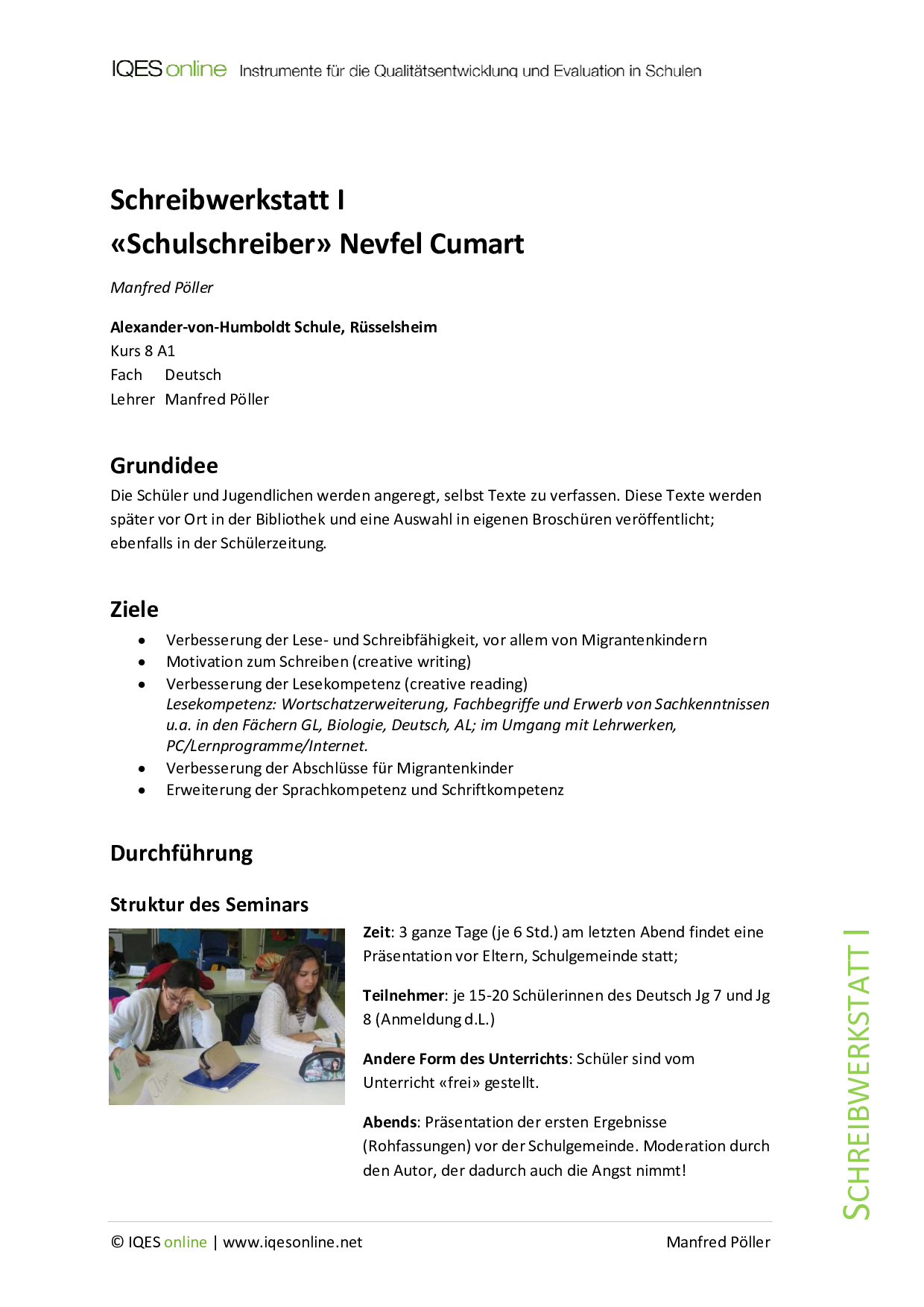 Leiter der Schreibwerkstatt an der Alexander-von-Humboldt-Schule, Rüsselsheim