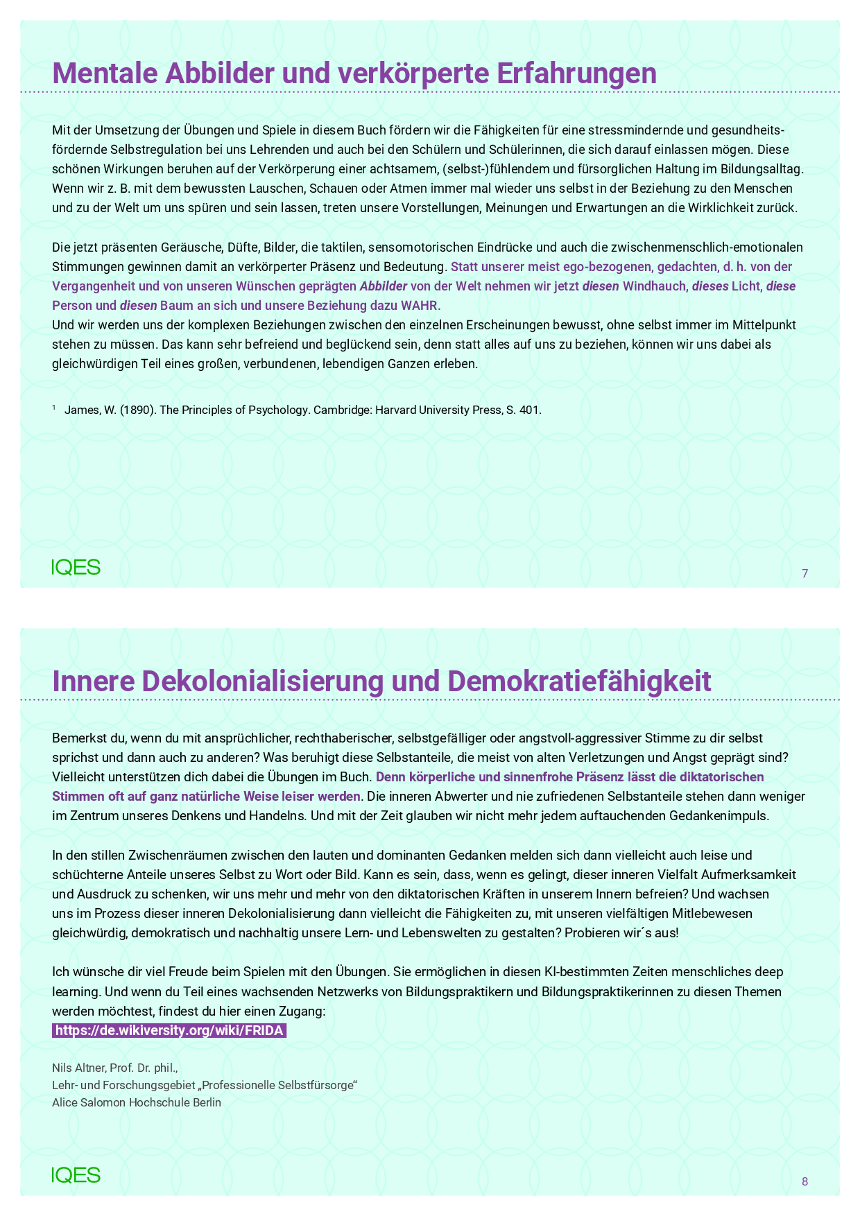 Nils Altner ist Bildungs- und Gesundheitswissenschaftler mit den Arbeitsbereichen achtsame (Selbst)Fürsorge, Gesundheit, Persönlichkeitsentwicklung und nachhaltige demokratische Kulturgestaltung in der Bildung. Er veröffentlichte unter anderem auch das Praxisbuch voller geprüfter Übungsideen »Wege zu mehr Achtsamkeit und Mitgefühl in der Schule« und unterrichtet als Gastprofessor an der Alice Salomon Hochschule in Berlin, an den Kliniken Essen-Mitte/Universität Duisburg-Essen sowie beim ave-institut.de.